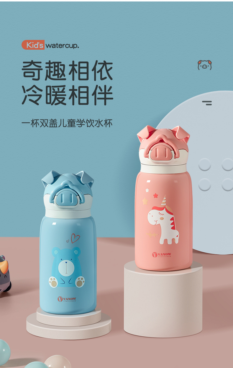 儿童保温杯带吸管直饮两用 幼儿园可爱水杯小学