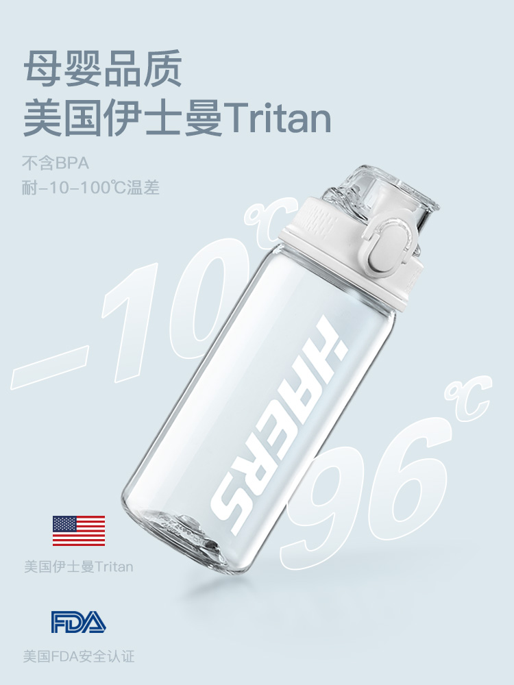 哈尔斯耐高温运动水杯子学生便携男耐摔大容量防摔食品级塑料水壶