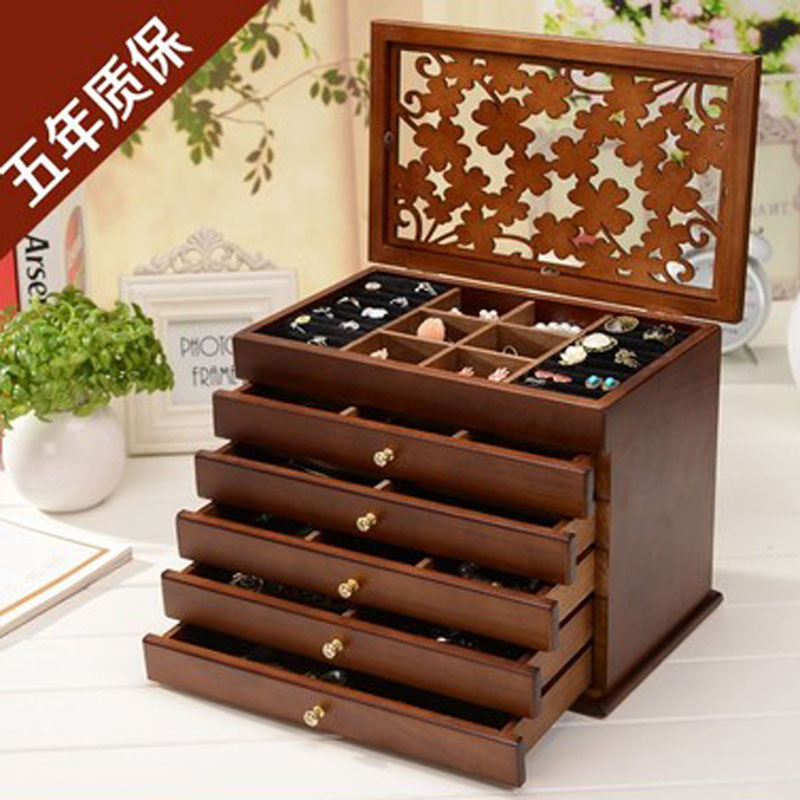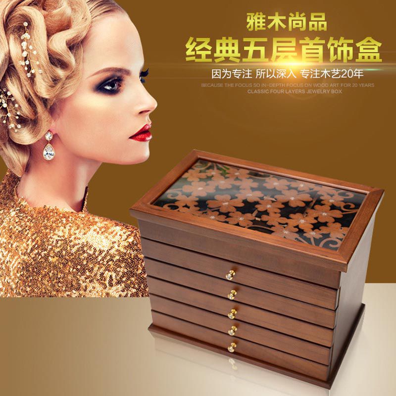 欧式首饰品收纳盒 韩国公主手提双层首饰盒 木质