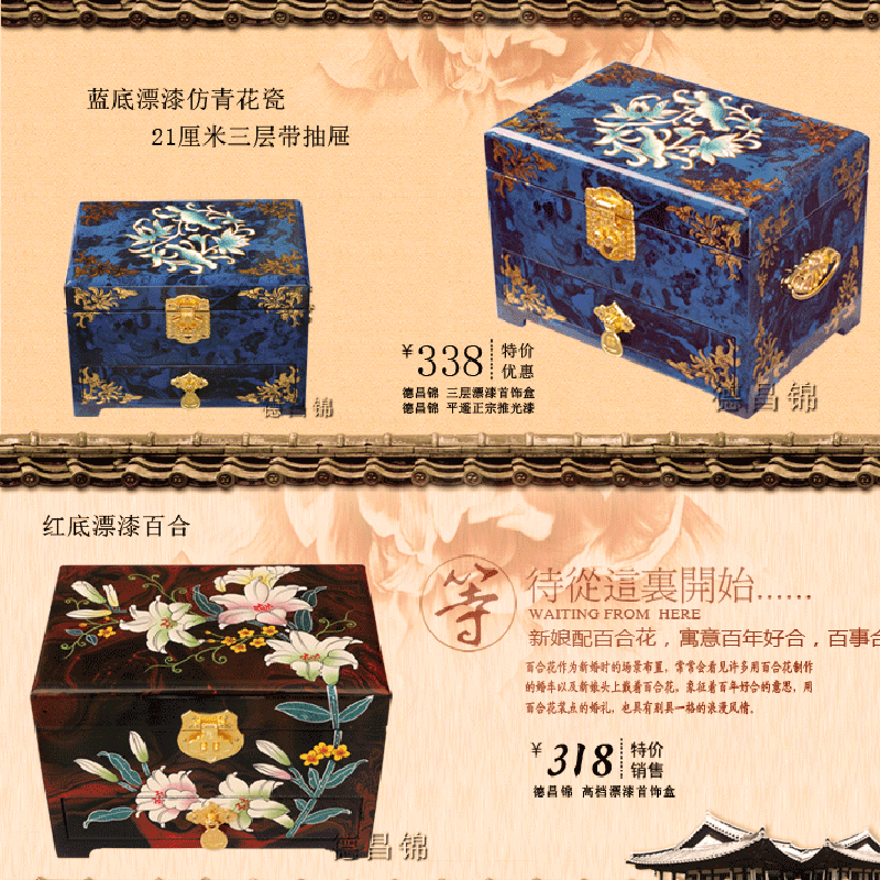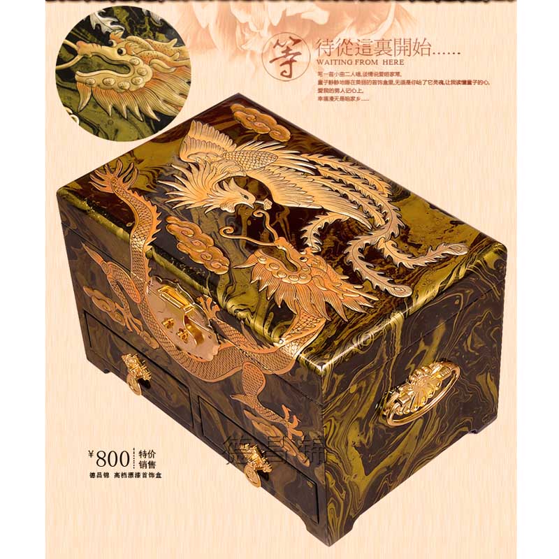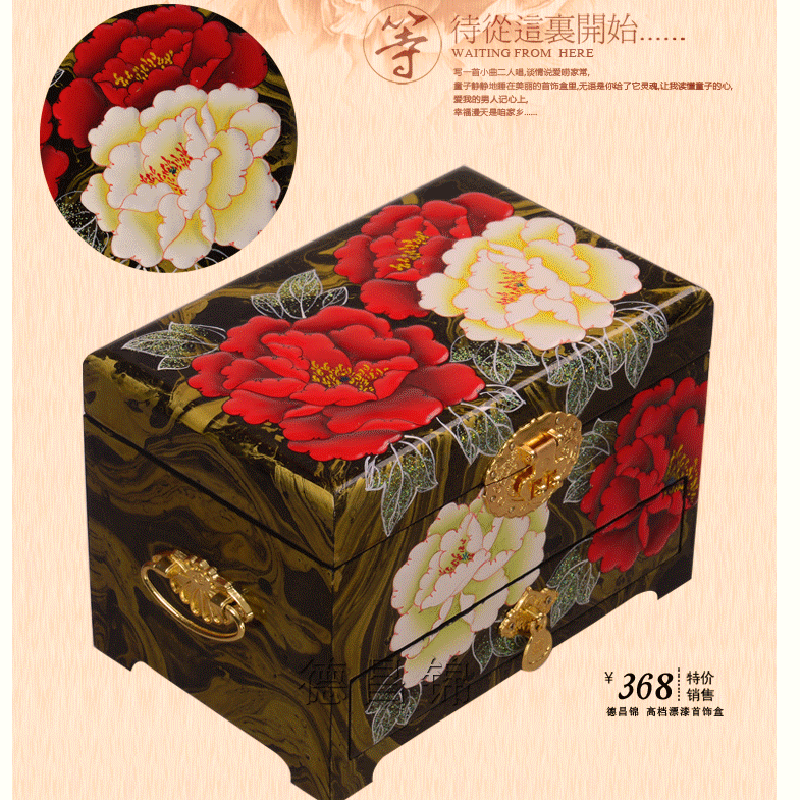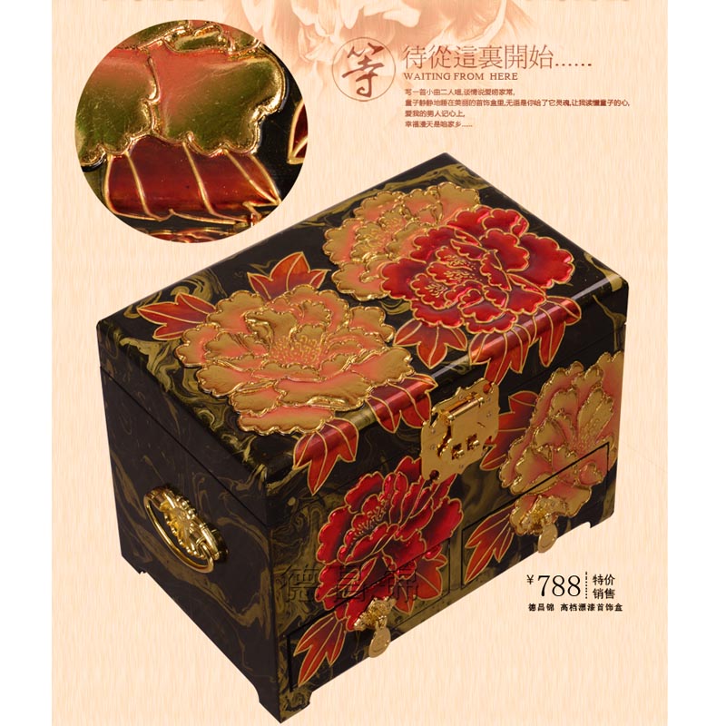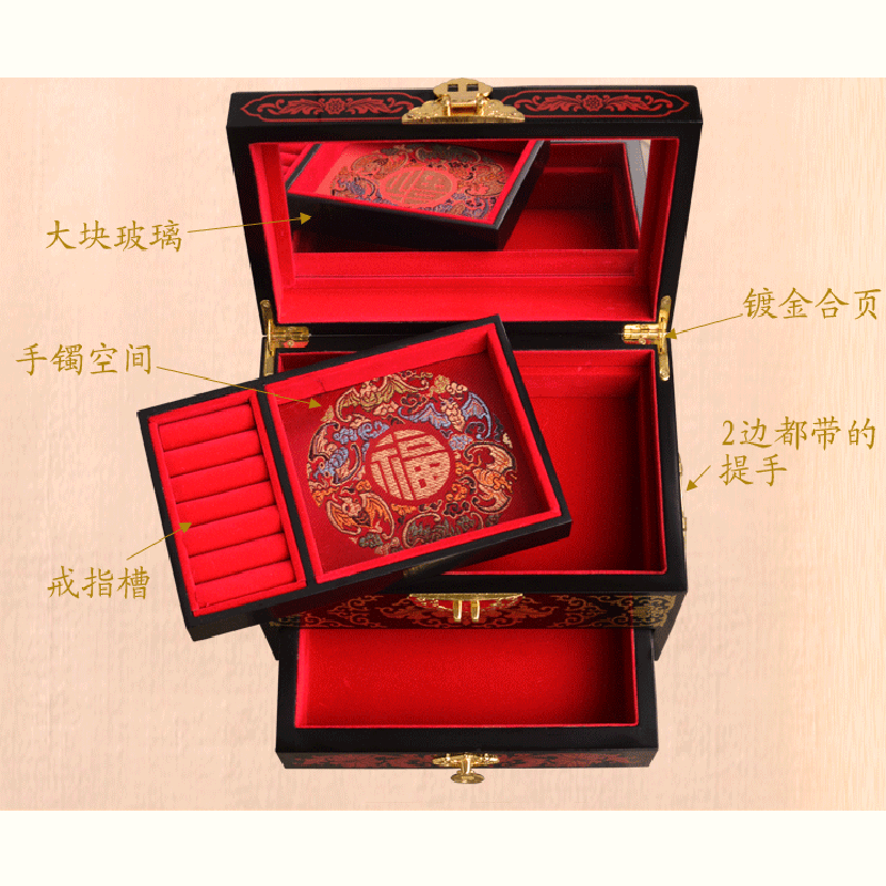 欧式首饰品收纳盒 韩国公主手提双层首饰盒 木质