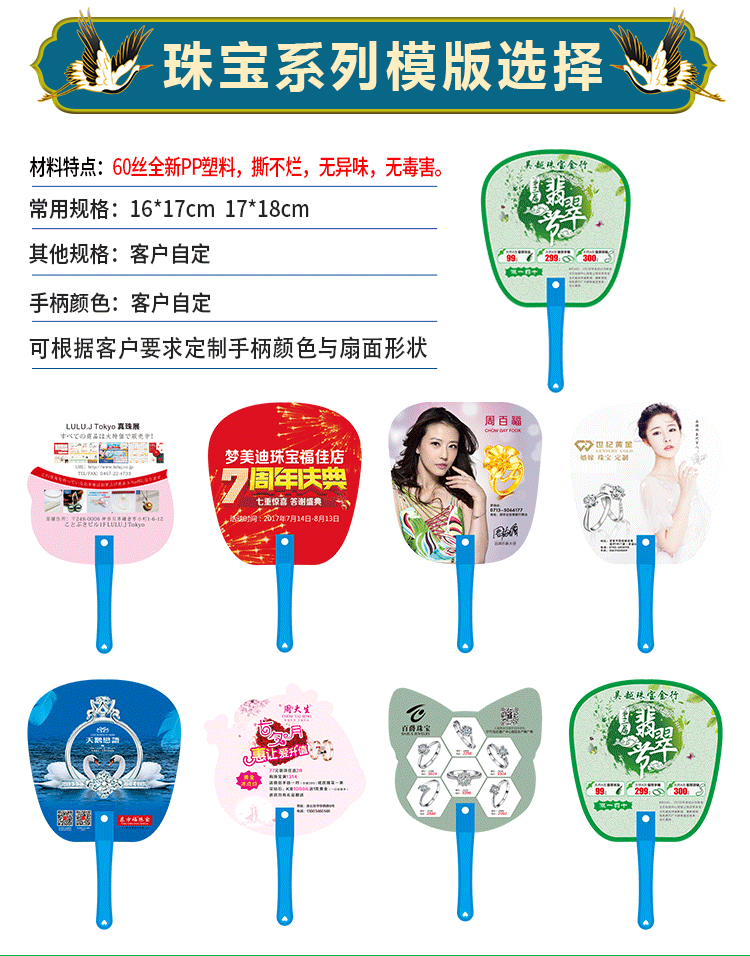 塑料广告扇子定制 PP珠宝胶扇团扇七折扇订做 招