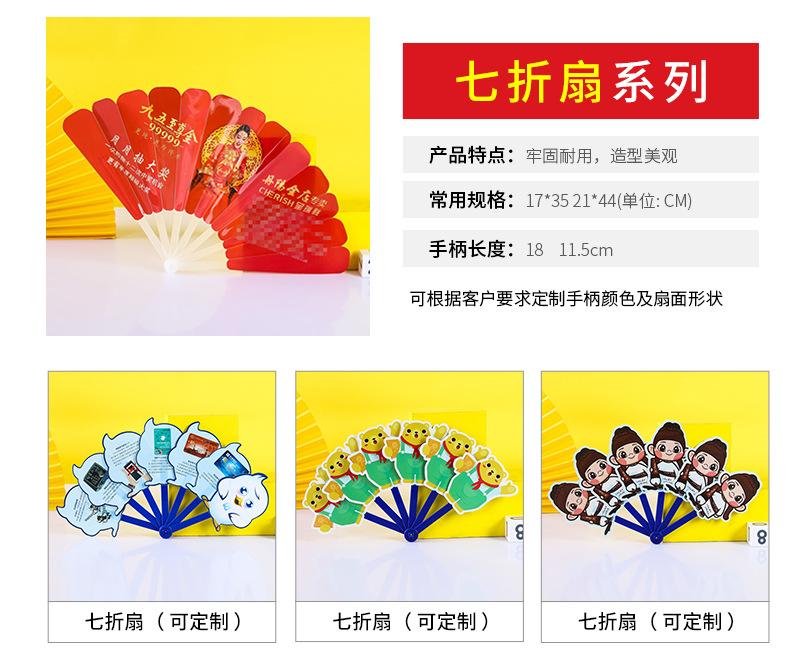 塑料广告扇子定制 PP珠宝胶扇团扇七折扇订做 招
