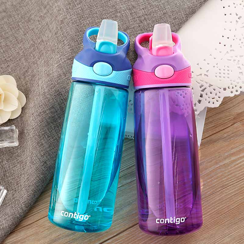 带吸管女学生运动弹盖水杯 便携简约大人孕妇夏