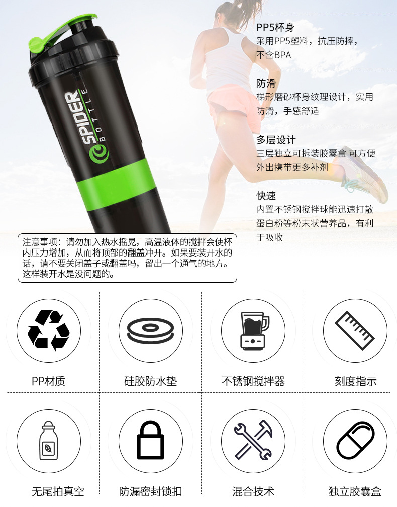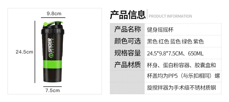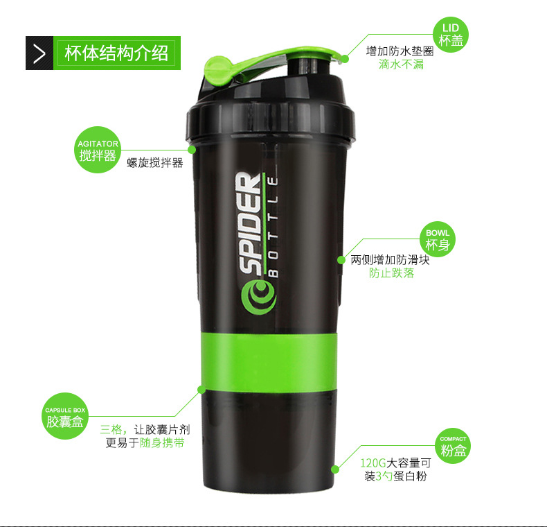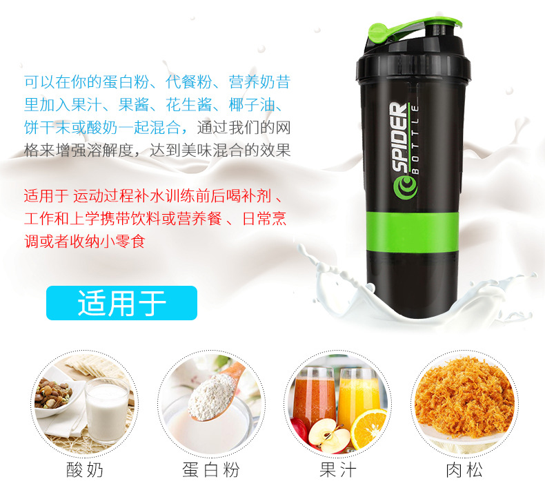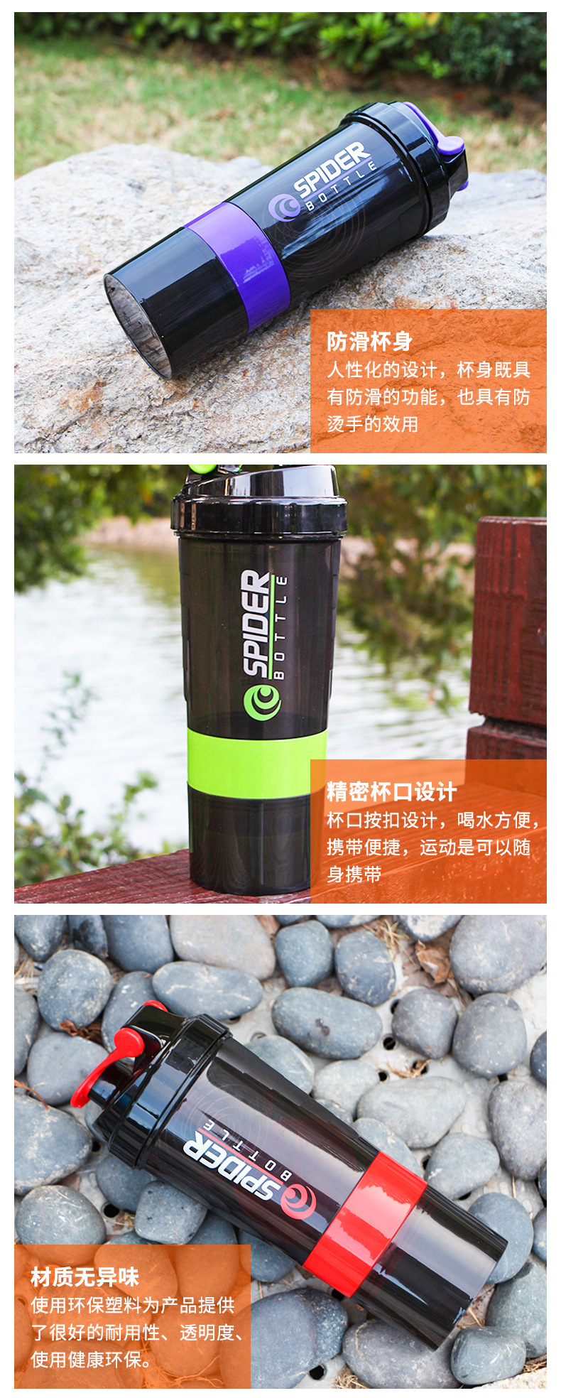 运动蛋白粉摇杯 塑料搅拌摇摇杯 三层多功能健身蛋白粉摇摇杯定制