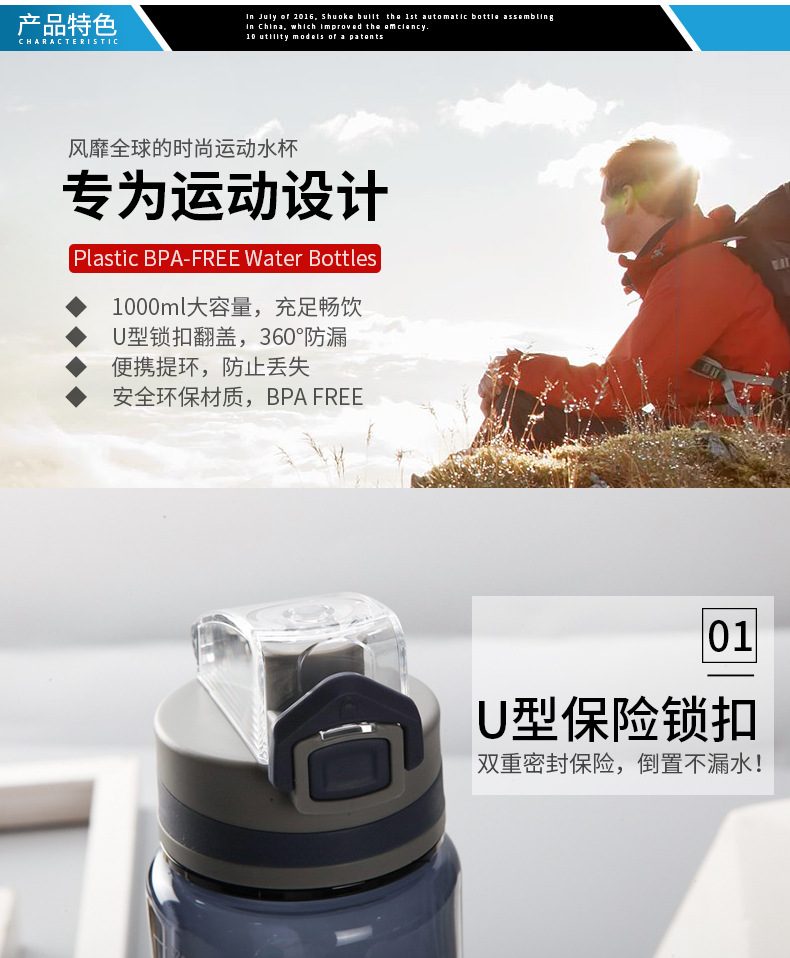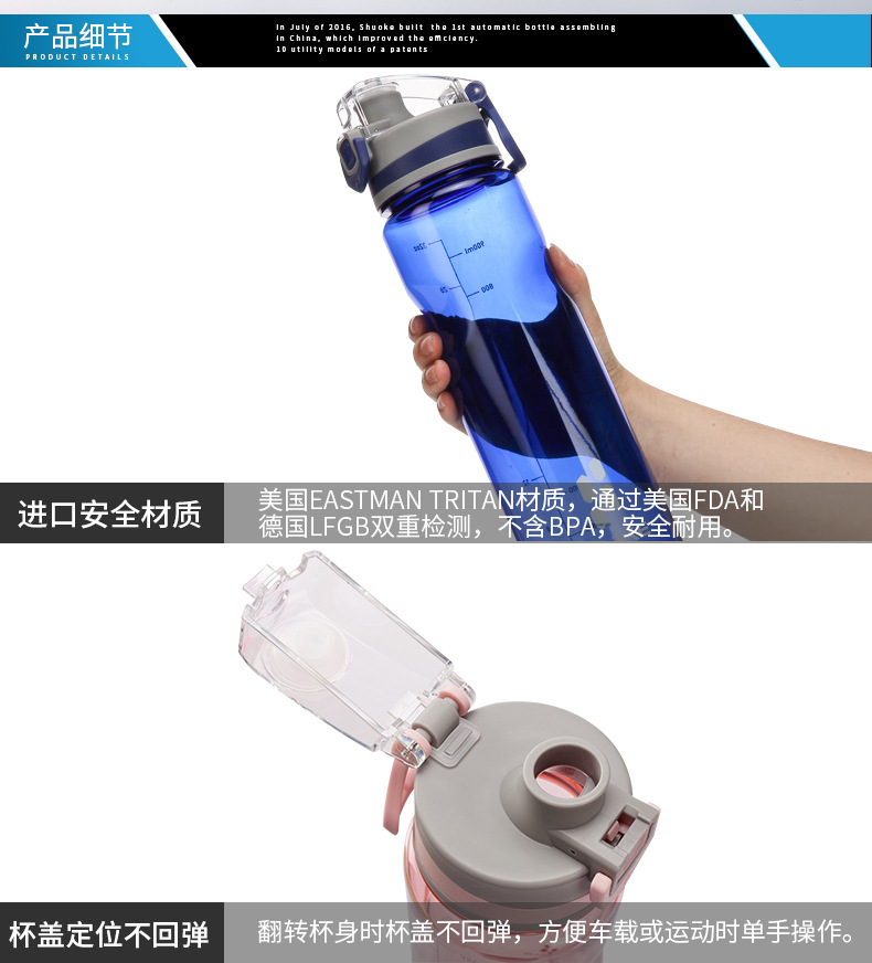 便携水杯Tritan塑料运动杯塑胶大容量锁扣盖子防漏太空杯子