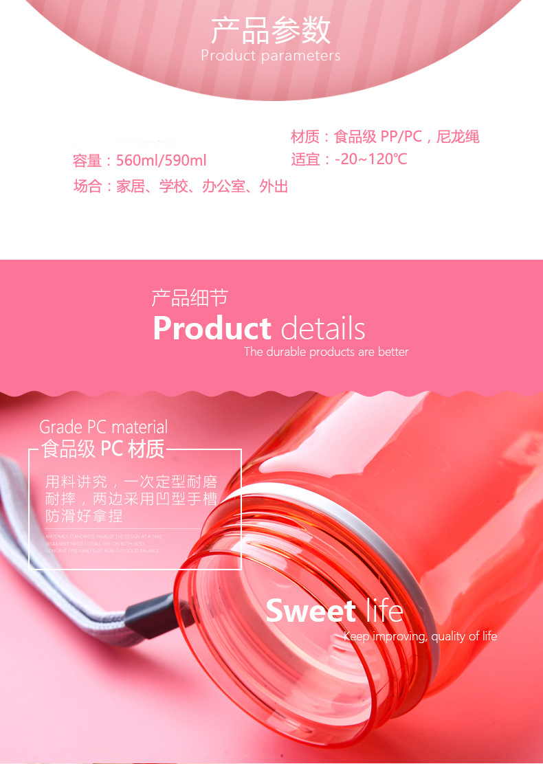 时尚便携防漏密封抗摔杯子运动水杯 随手杯创意水壶塑料杯子