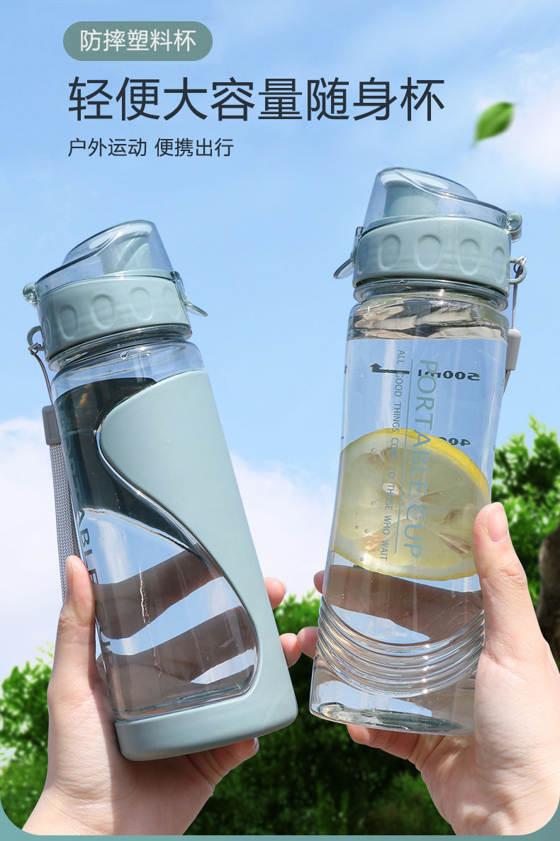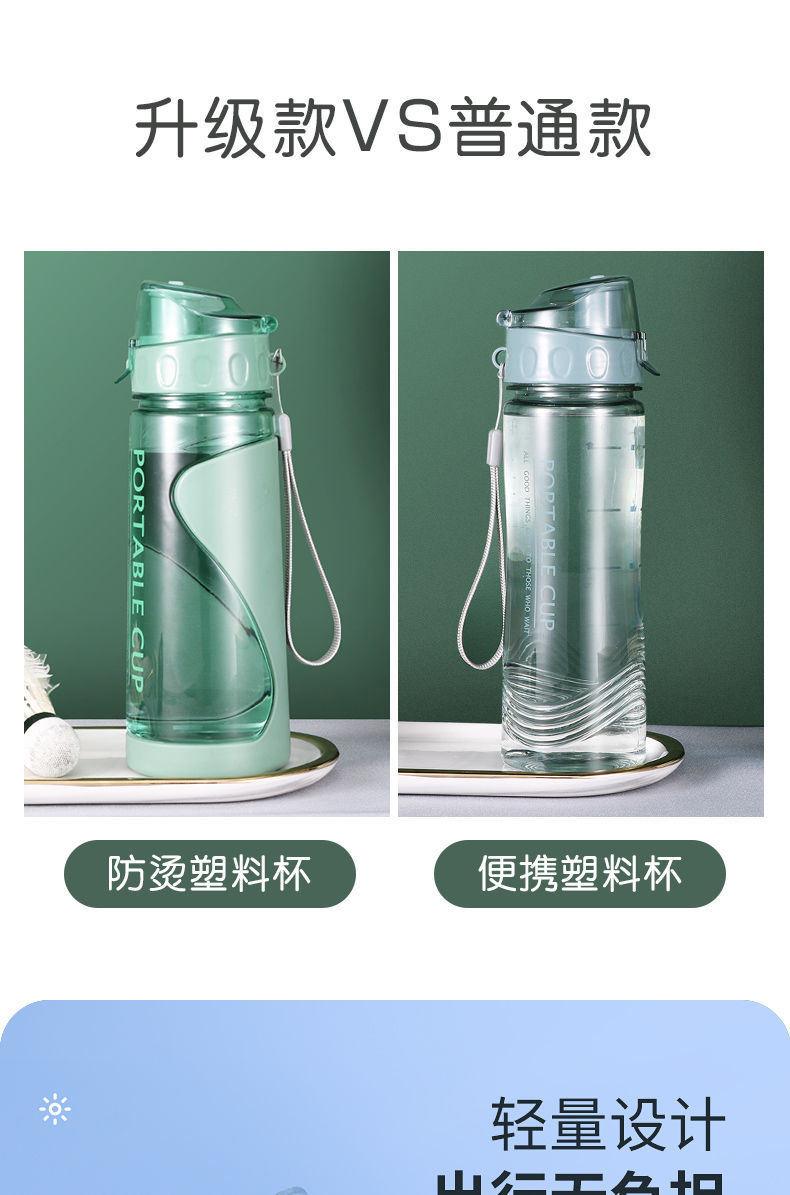 学生水杯塑料便携大容量男女耐高温防摔运动水 壶随身携带太空杯子