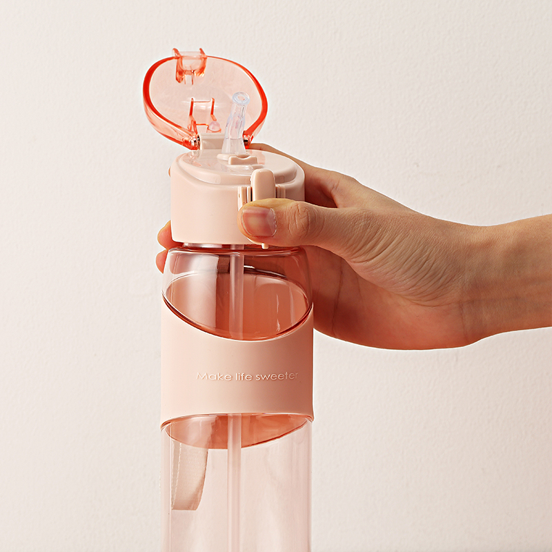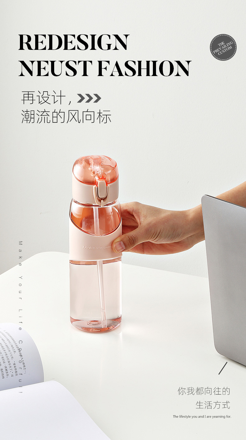 带吸管女学生运动弹盖水杯 便携简约大人孕妇夏季专用塑料杯