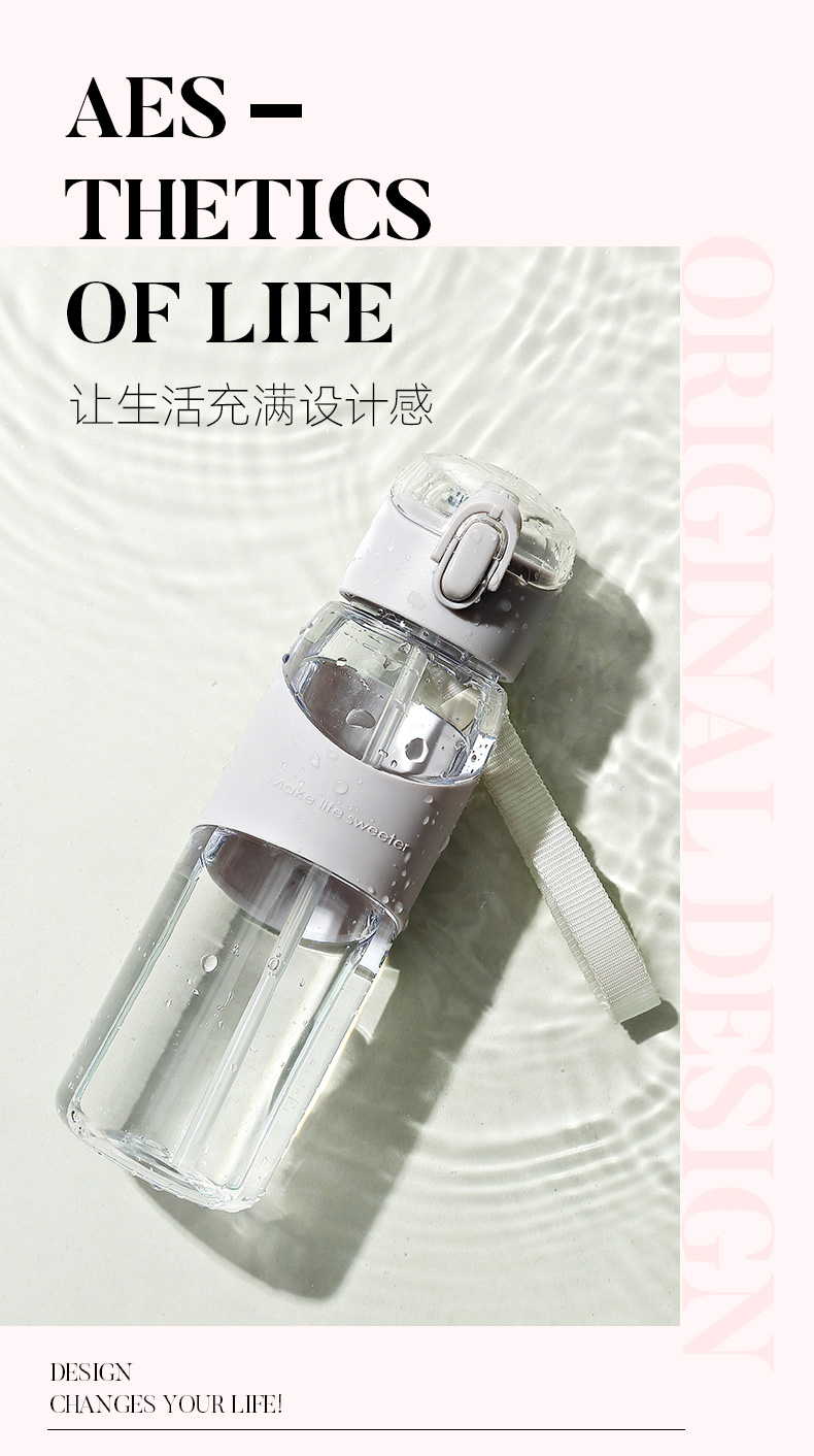 带吸管女学生运动弹盖水杯 便携简约大人孕妇夏