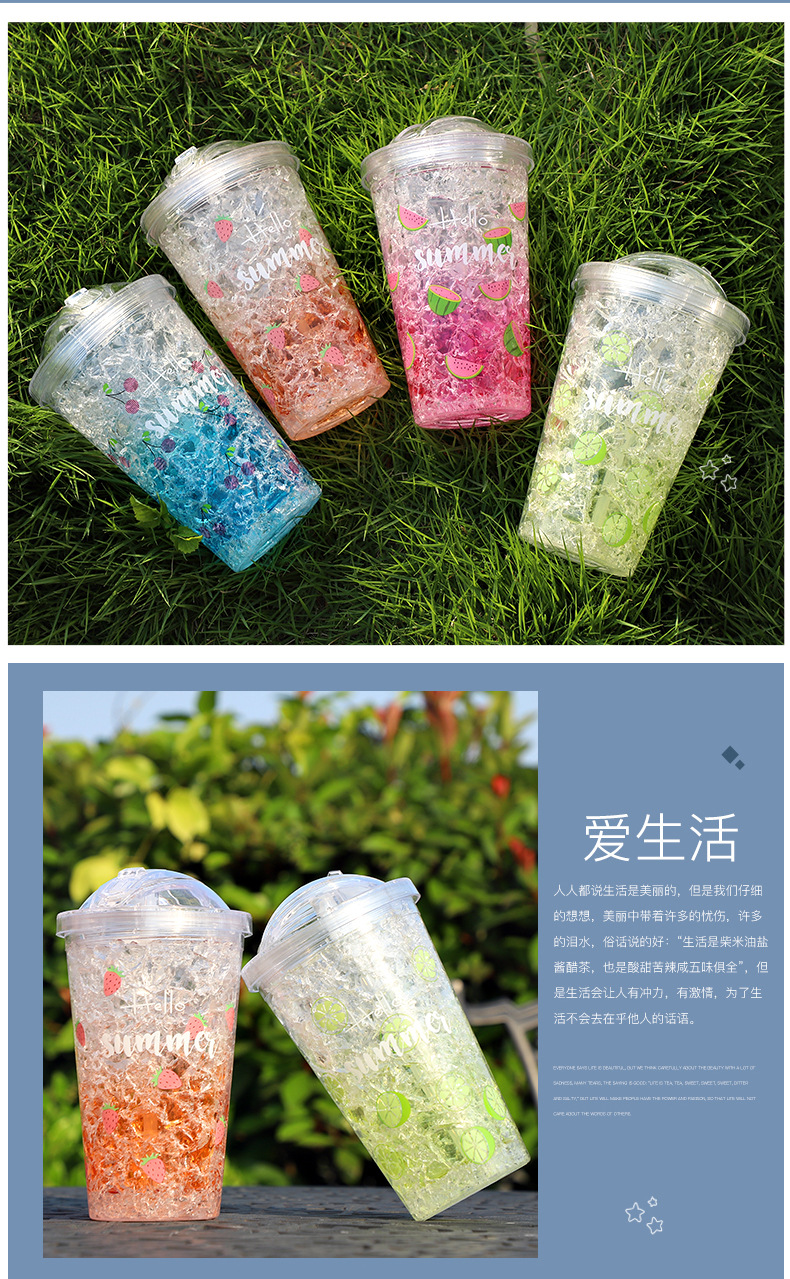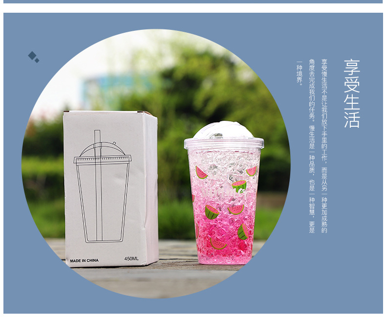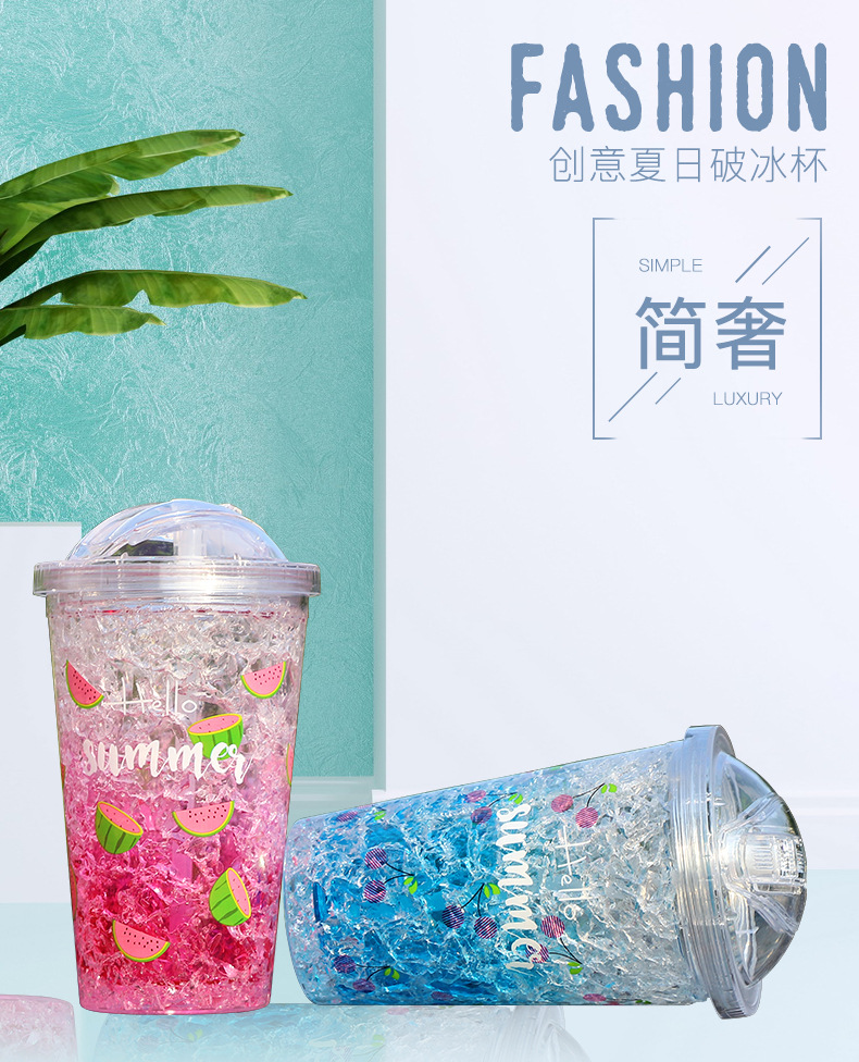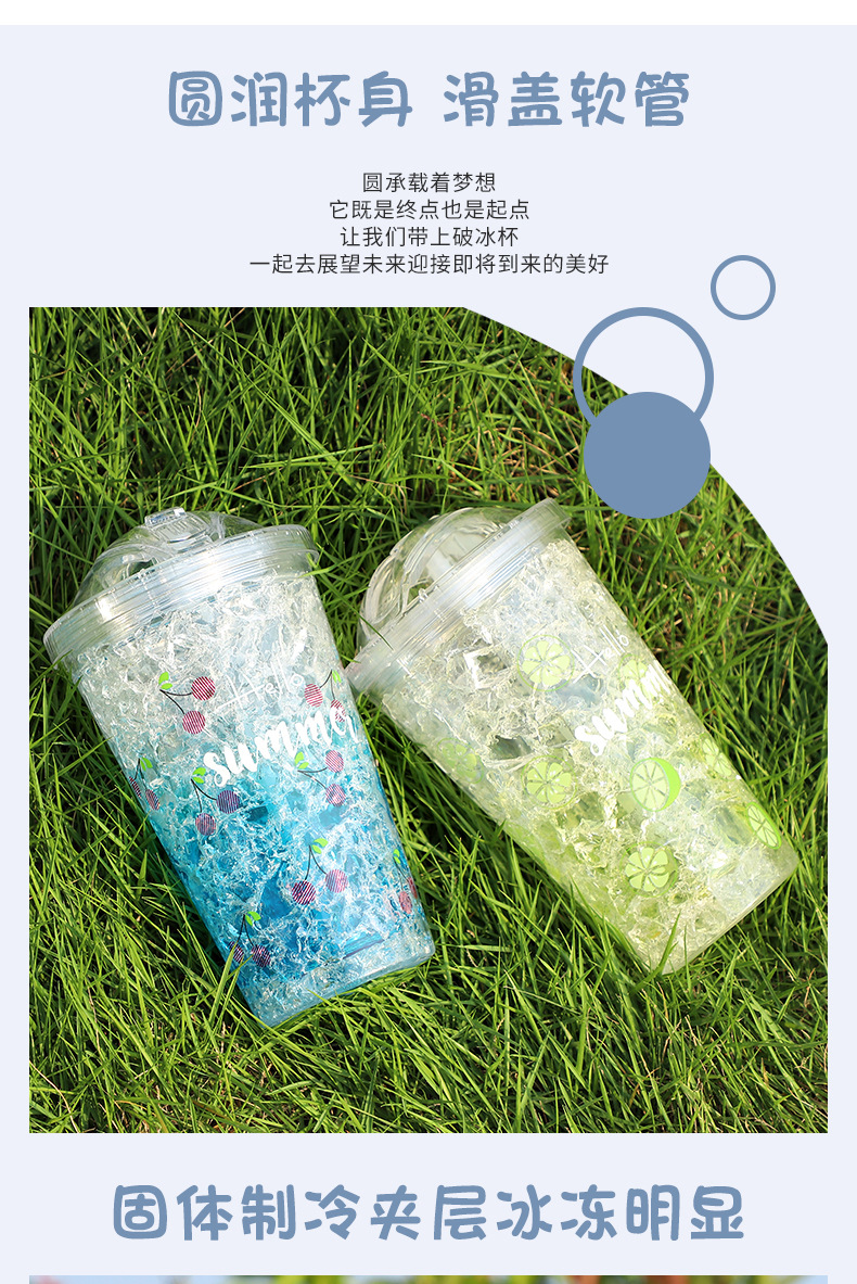 夏日吸管杯 学生双层吸管便携水杯制冷冰杯碎冰杯子定制