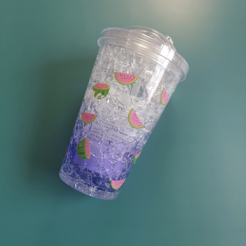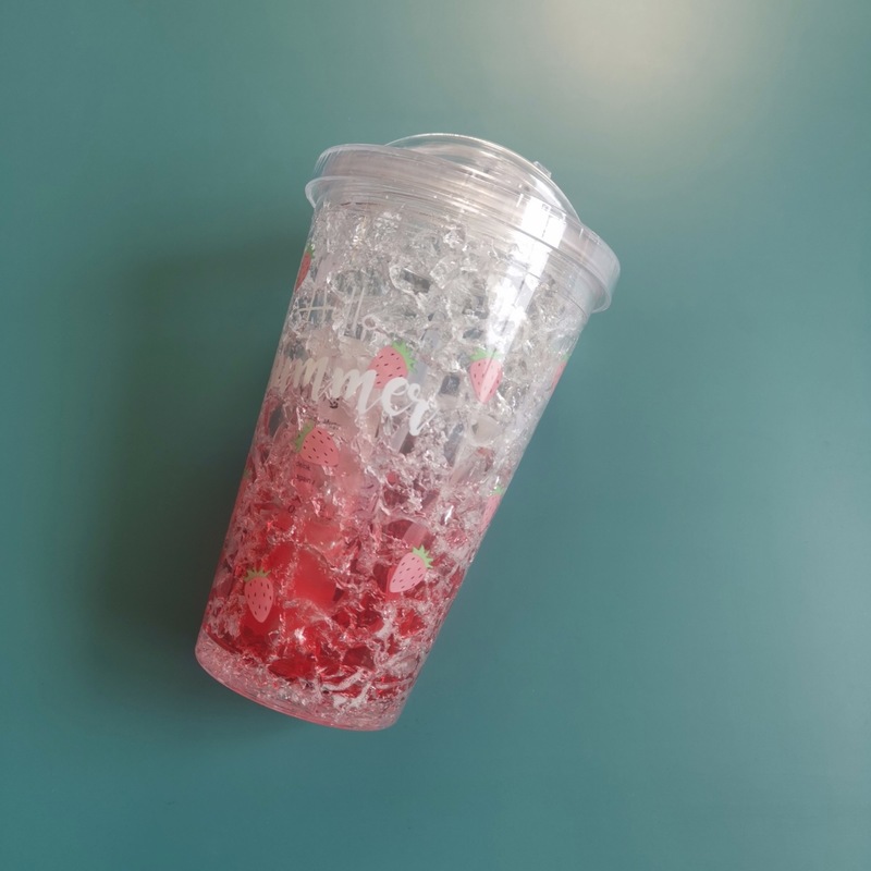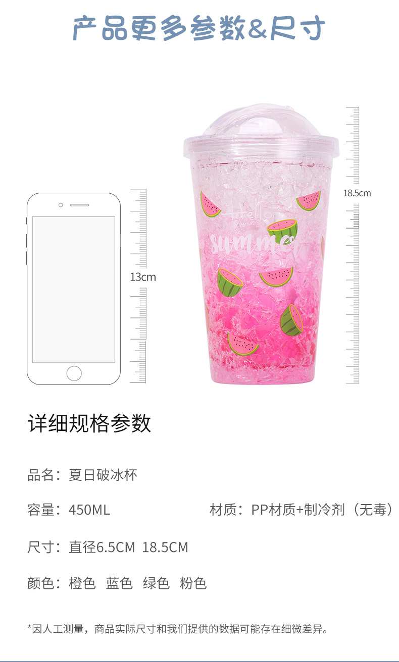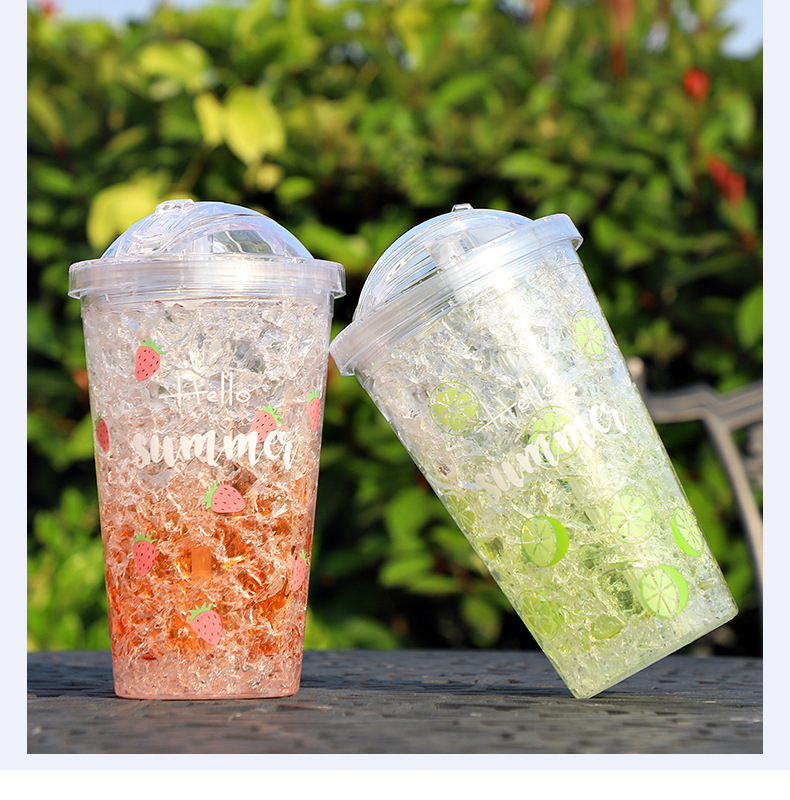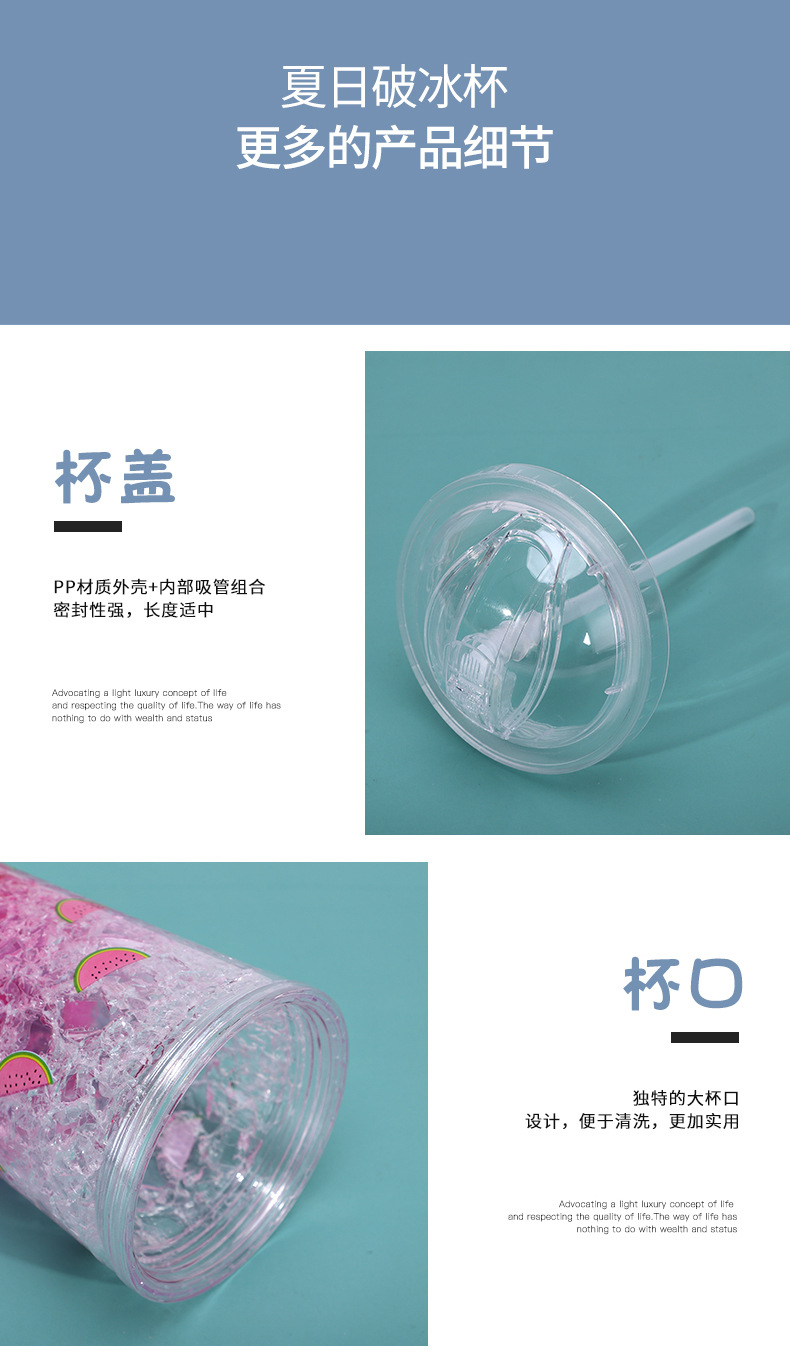 夏日吸管杯 学生双层吸管便携水杯制冷冰杯碎冰杯子定制