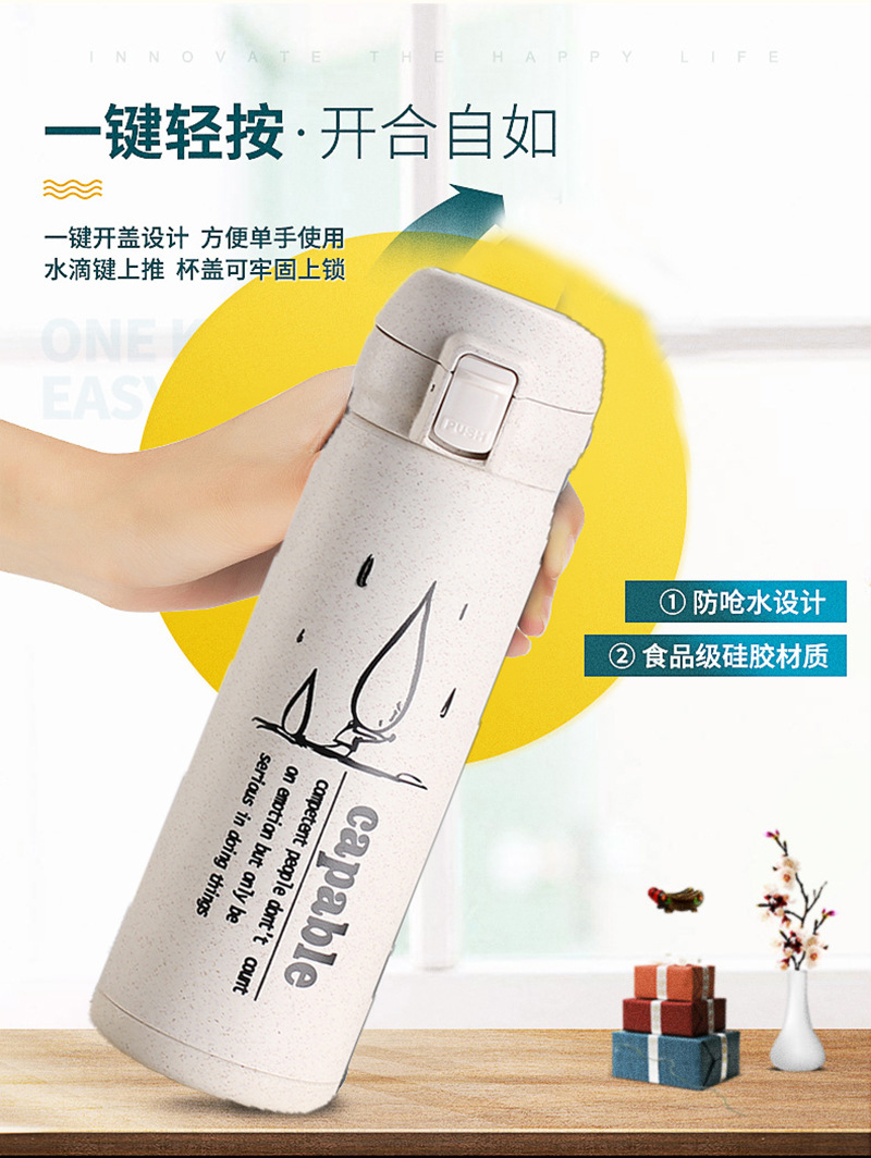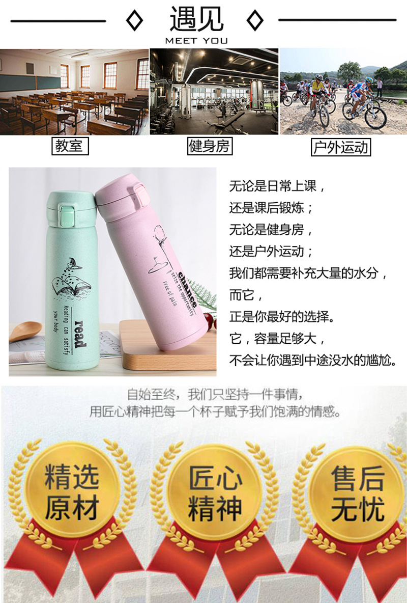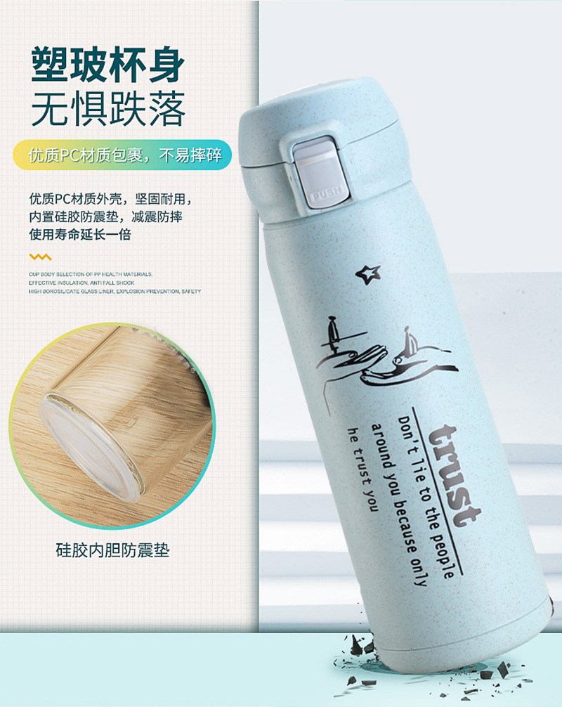 定制水杯厂家 玻璃杯环保麦秸秆塑玻杯 清新学生