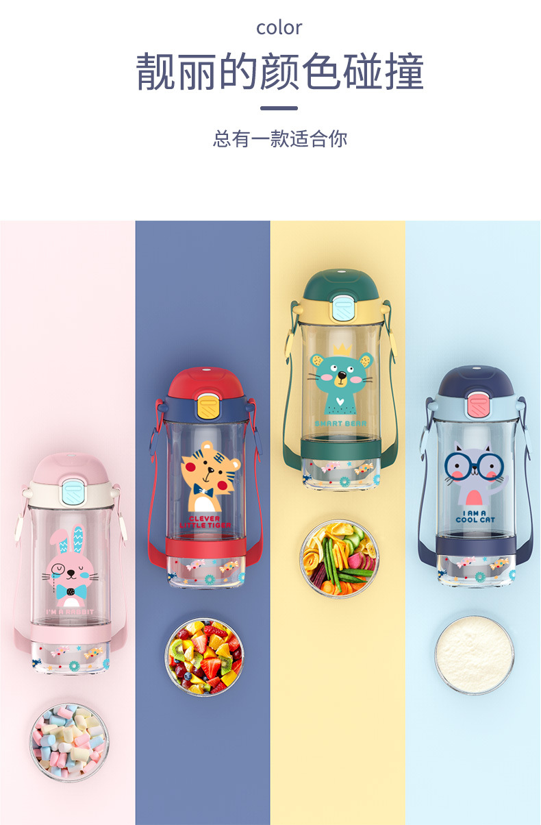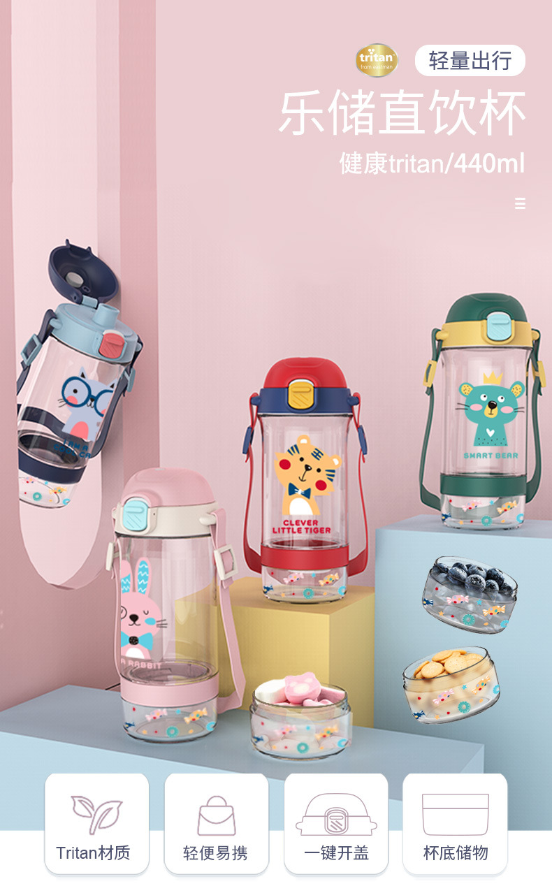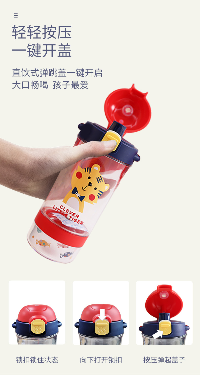 弹跳锁扣直饮杯定做 卡通便携背带儿童两用随手杯批发 礼品水杯工厂直销现货