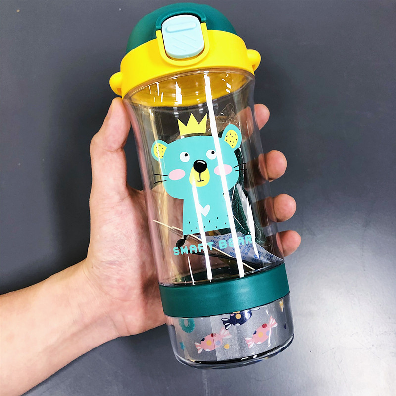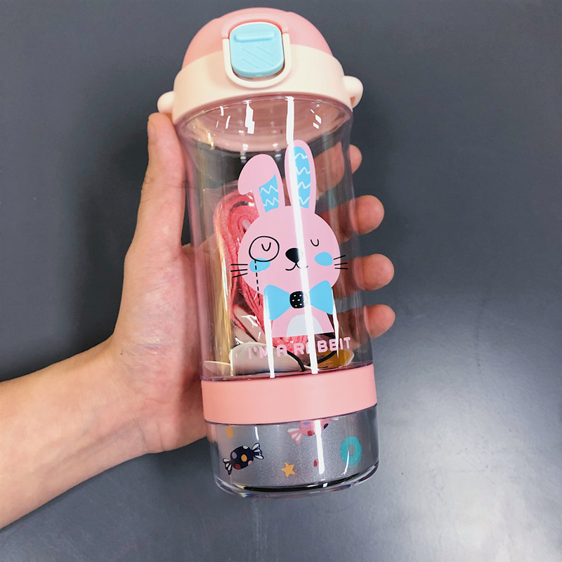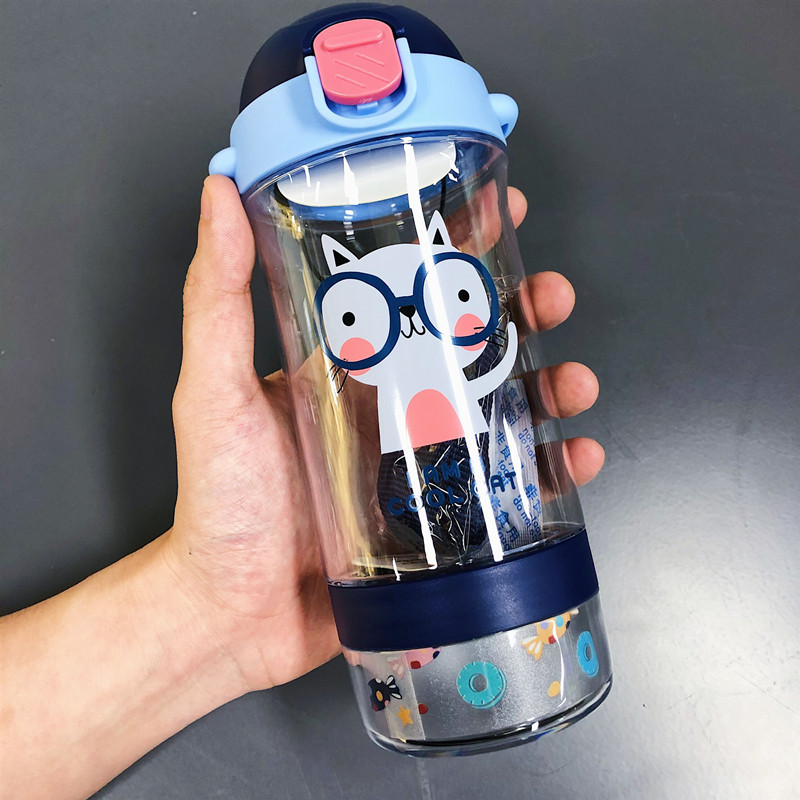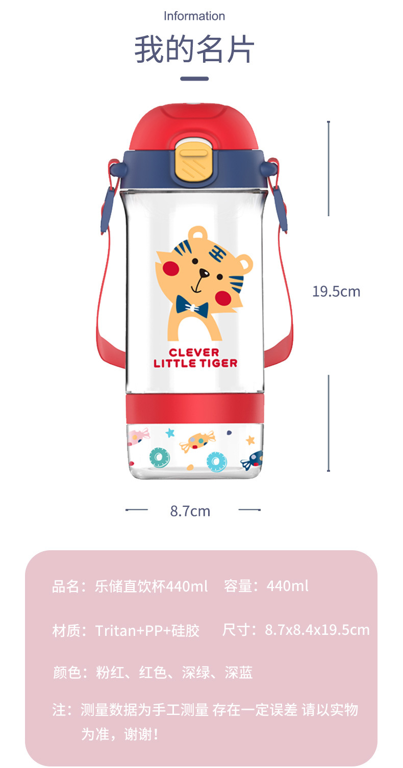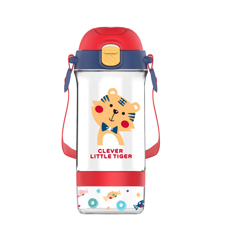 弹跳锁扣直饮杯定做 卡通便携背带儿童两用随手杯批发 礼品水杯工厂直销现货