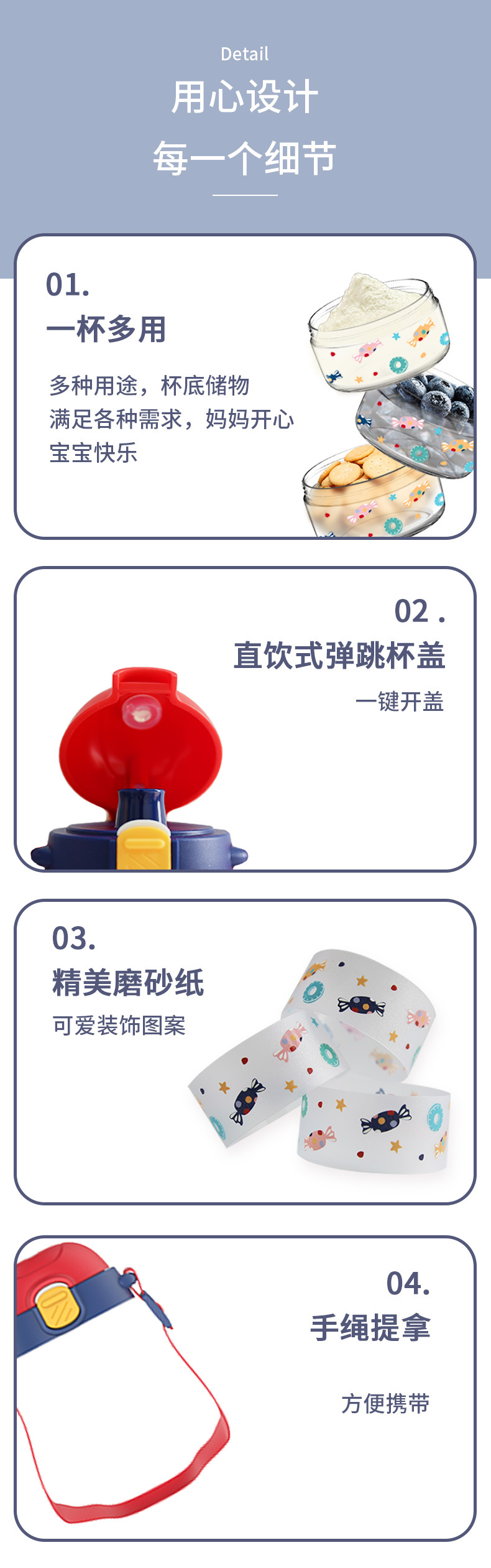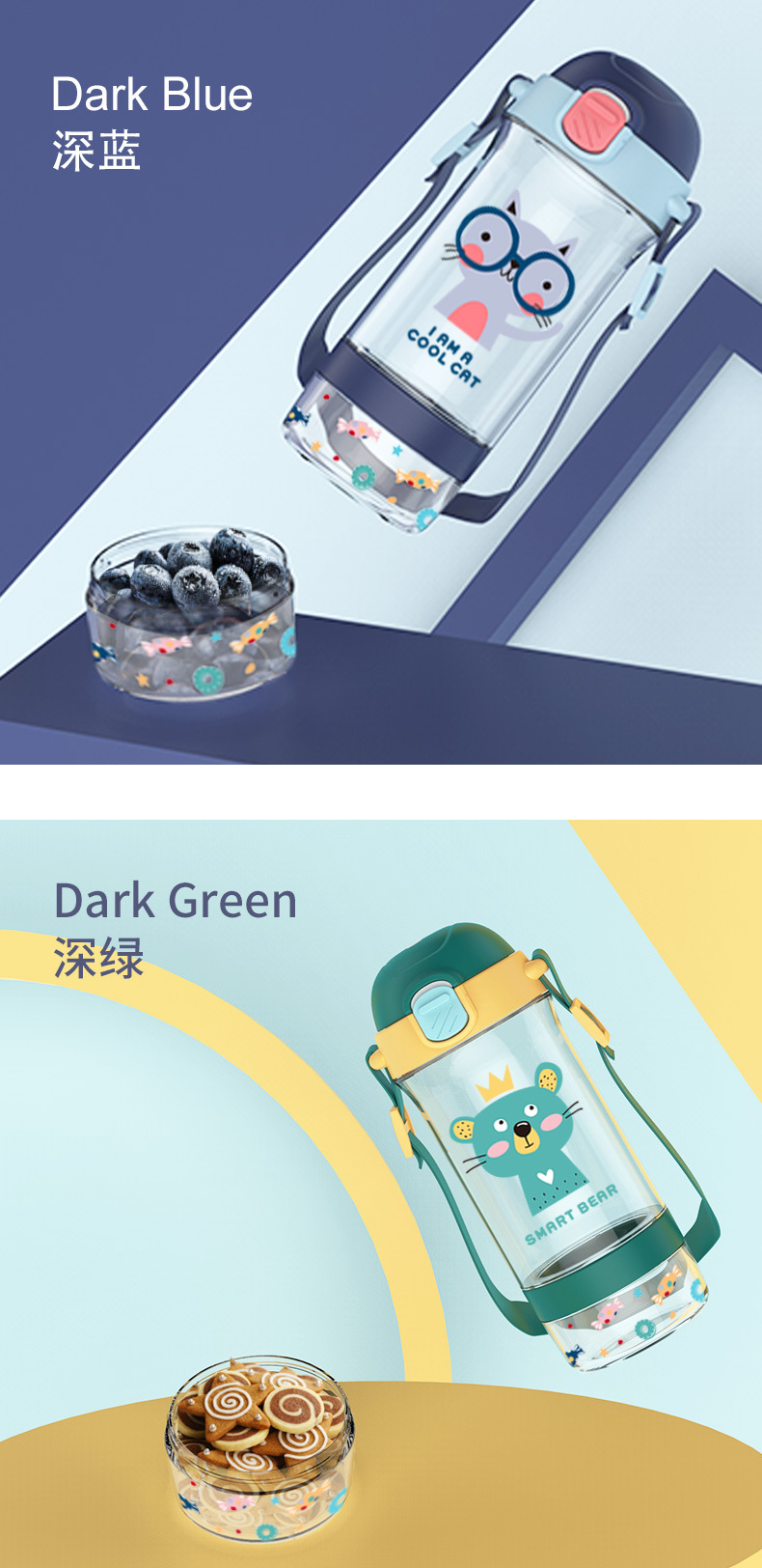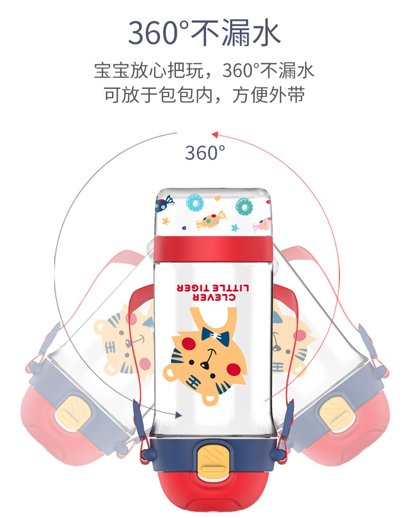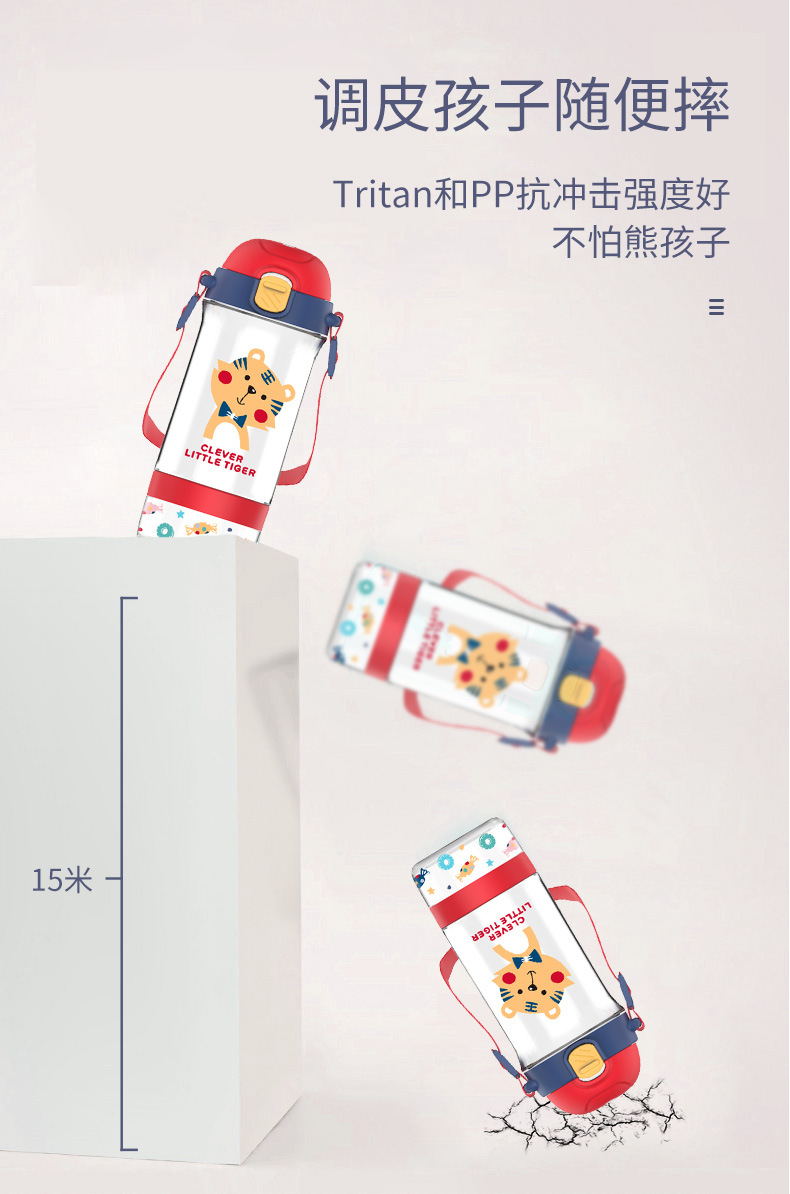 弹跳锁扣直饮杯定做 卡通便携背带儿童两用随手