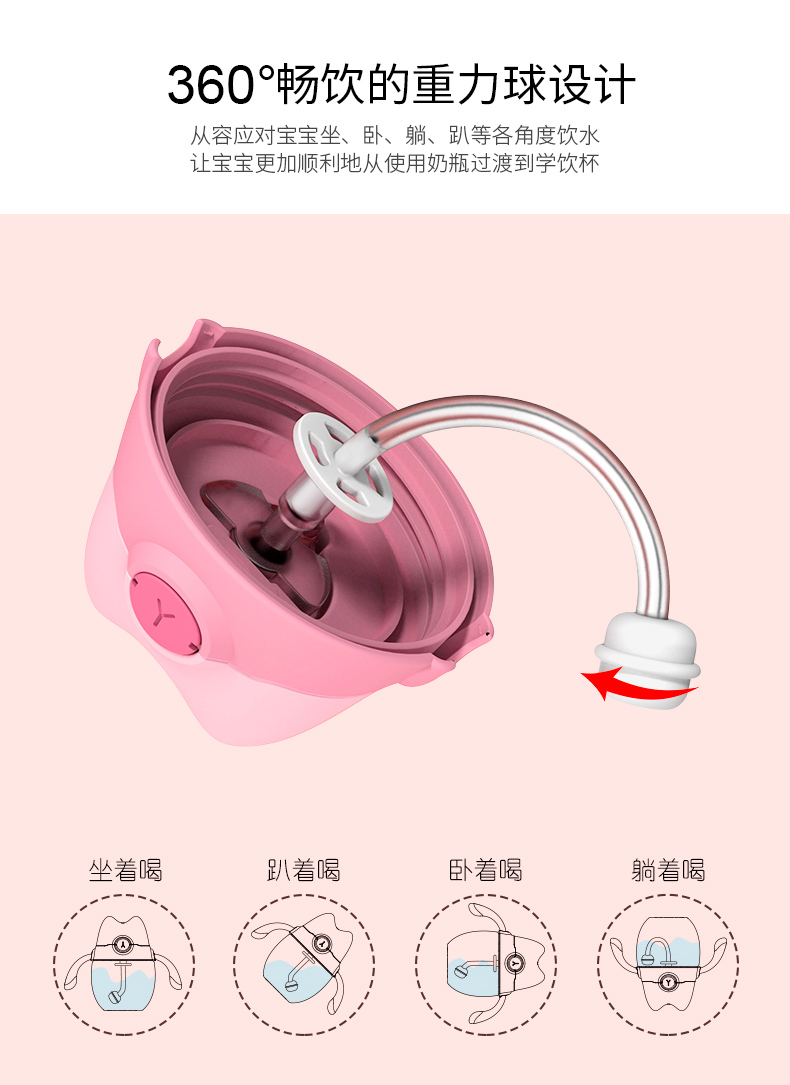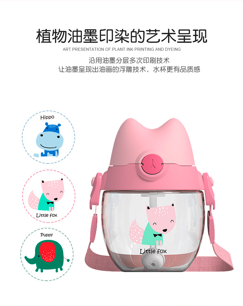 弹跳锁扣直饮杯定做 卡通便携背带儿童两用随手