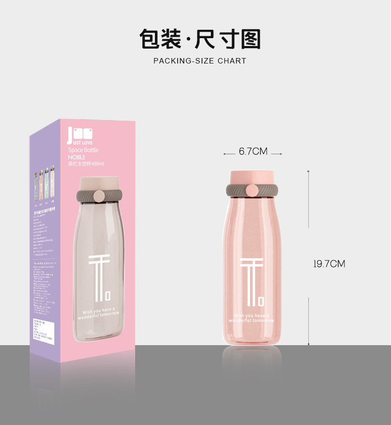创意便携英伦太空杯480ml 简约环保运动塑料水杯logo定制
