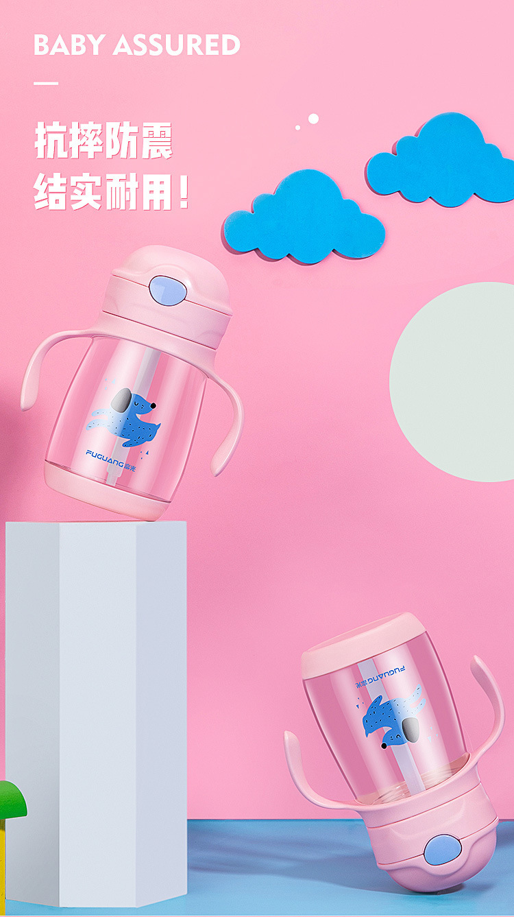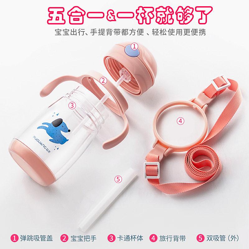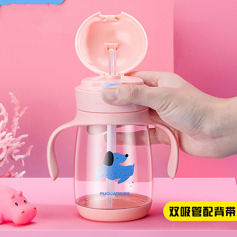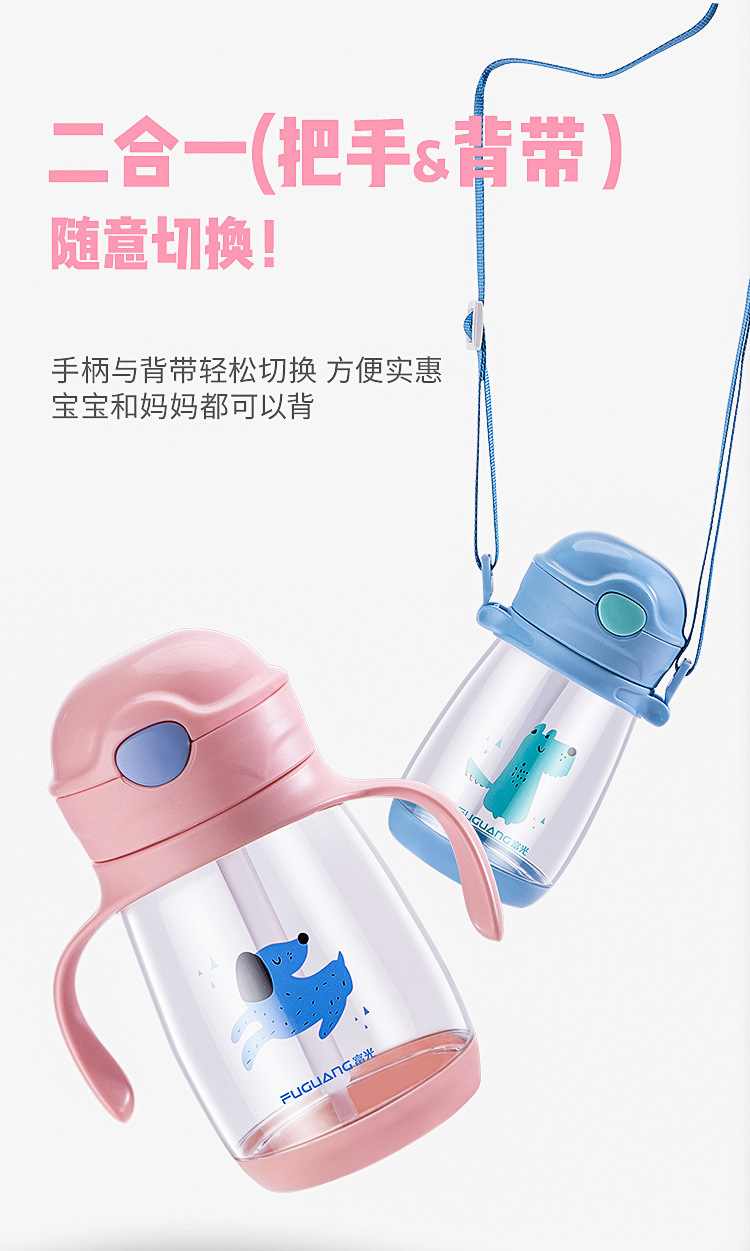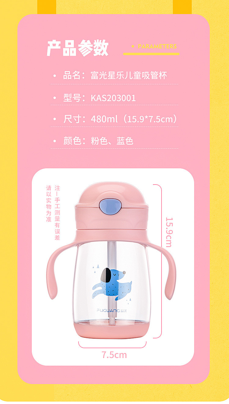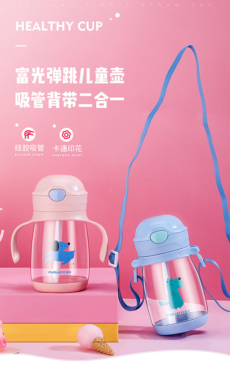 富光儿童吸管水杯便携夏天防摔可爱卡通塑料杯子带把幼儿园小学生