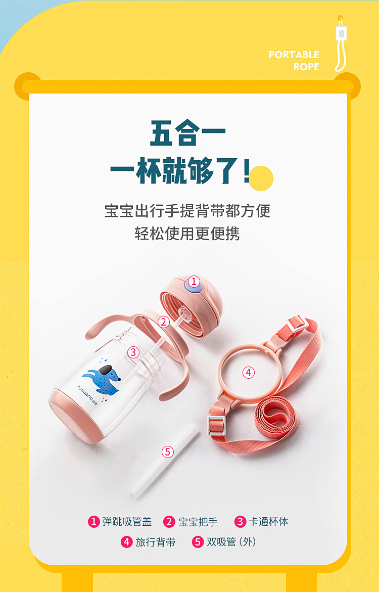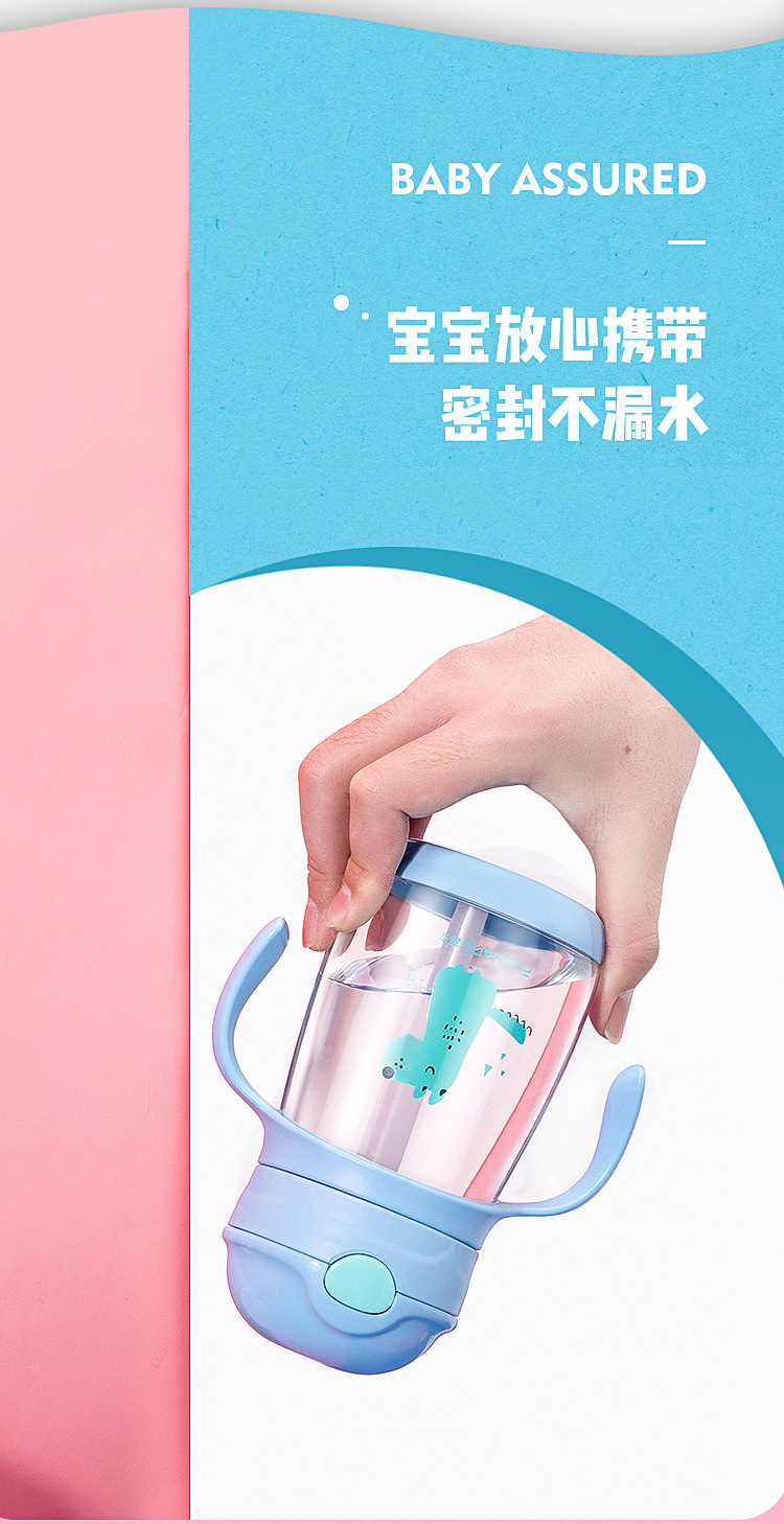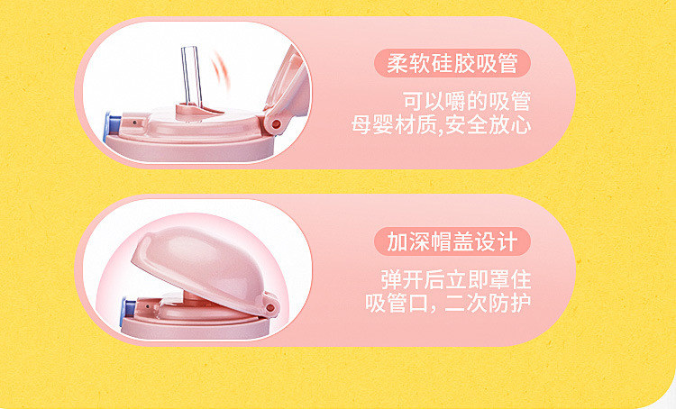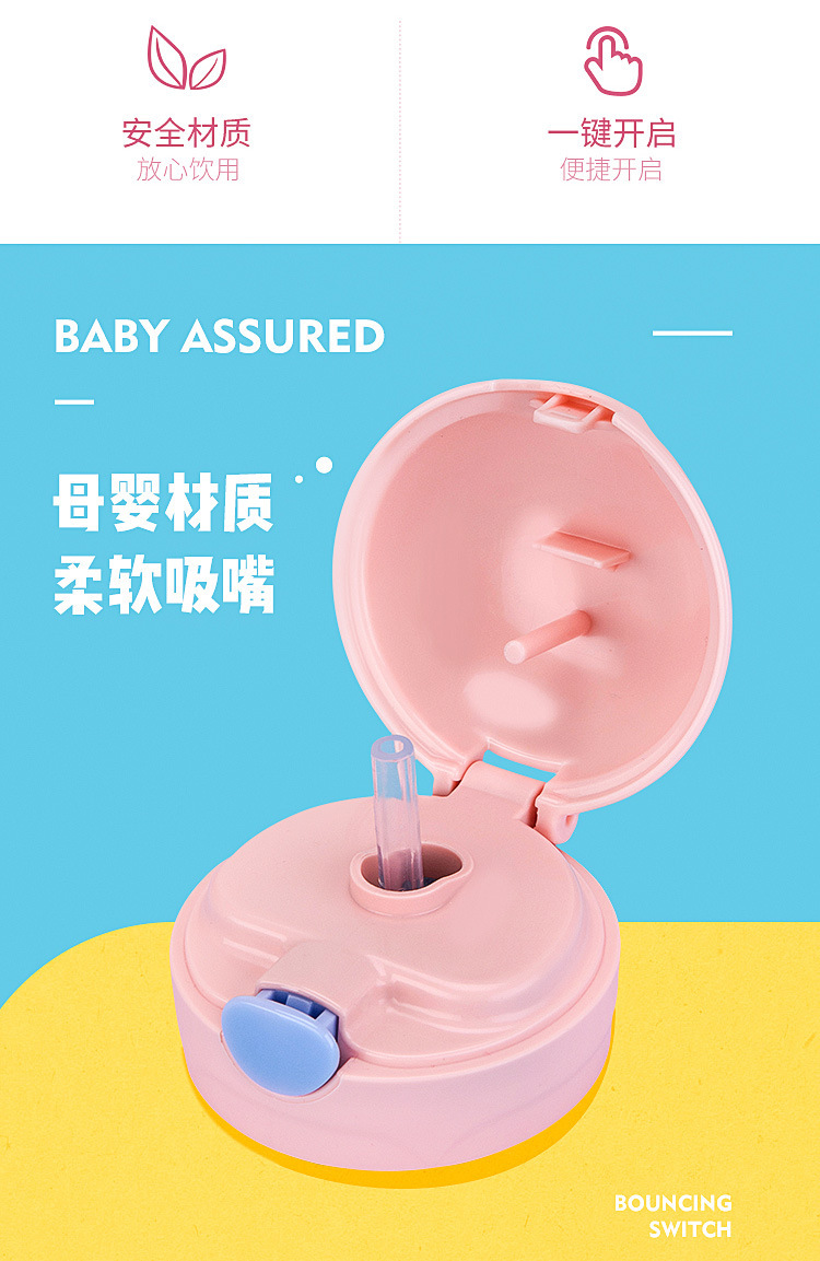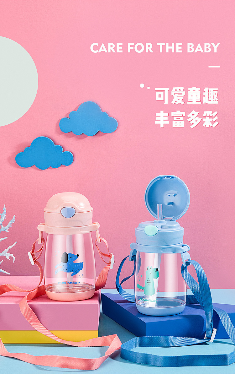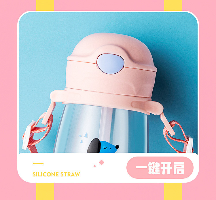 弹跳锁扣直饮杯定做 卡通便携背带儿童两用随手