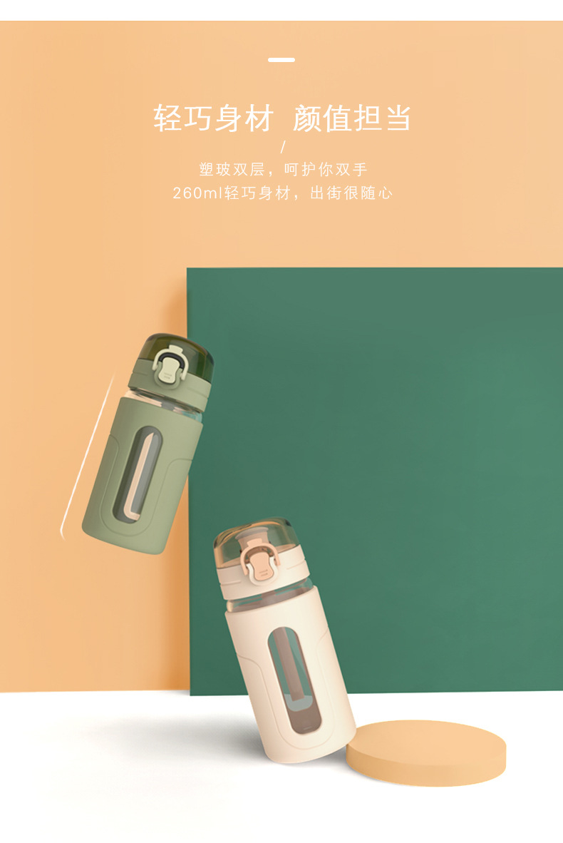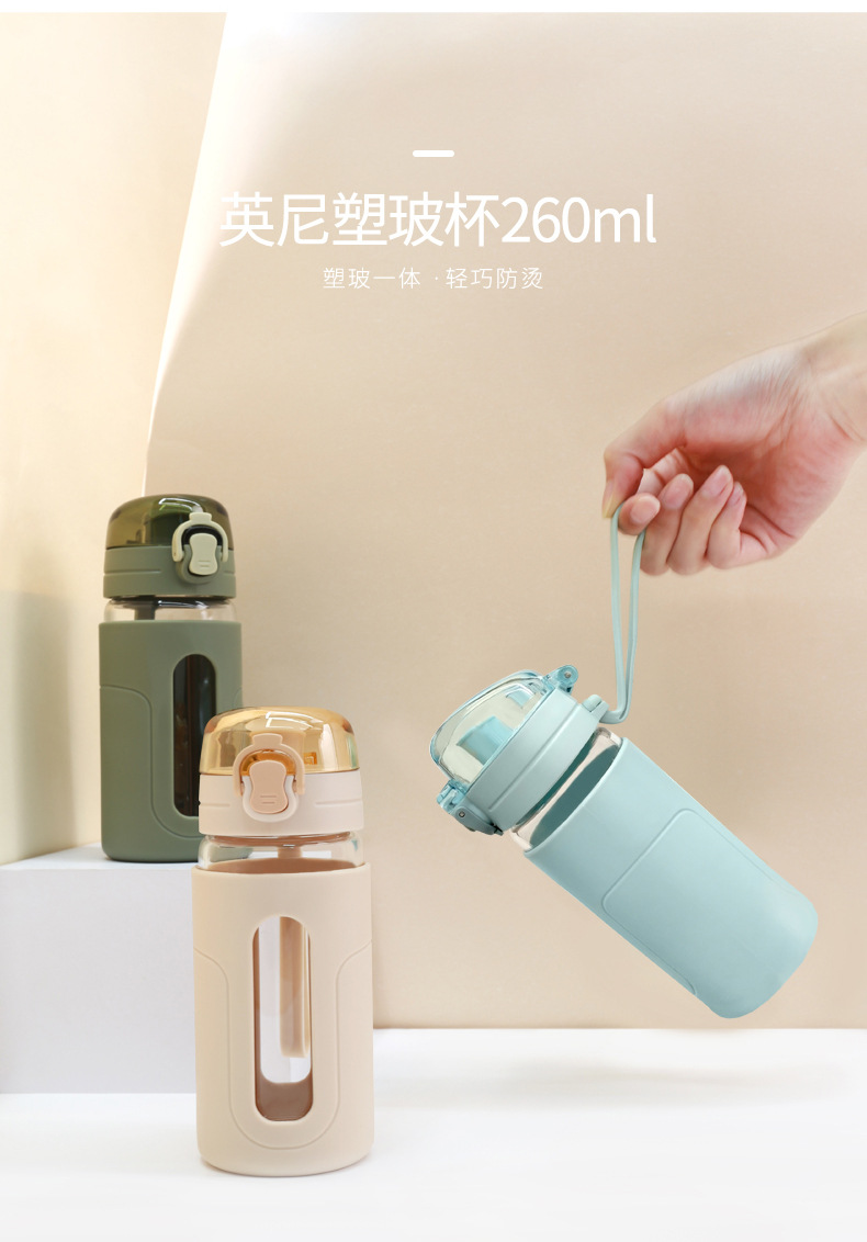 隔热纯色塑玻杯 高硼硅学生套防烫简约塑料水杯 随手礼品杯广告杯批发