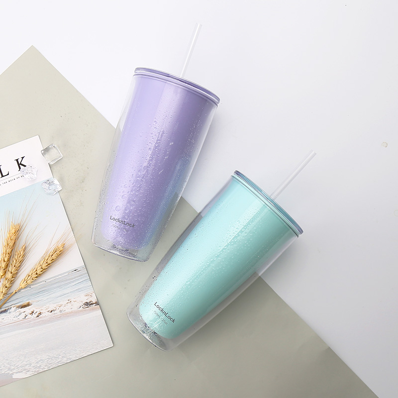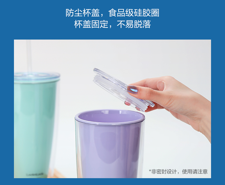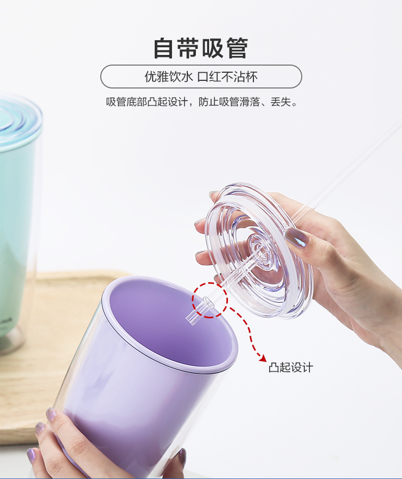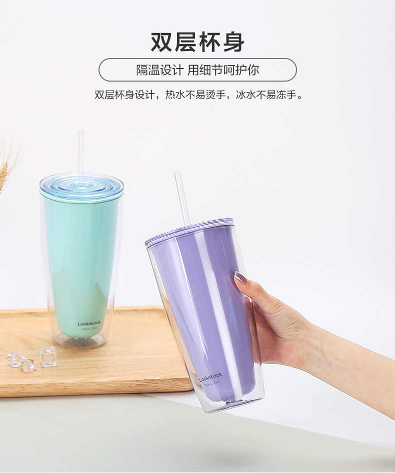 乐扣乐扣吸管杯 ins风带吸管水杯 女塑料杯子 简约大容量奶茶