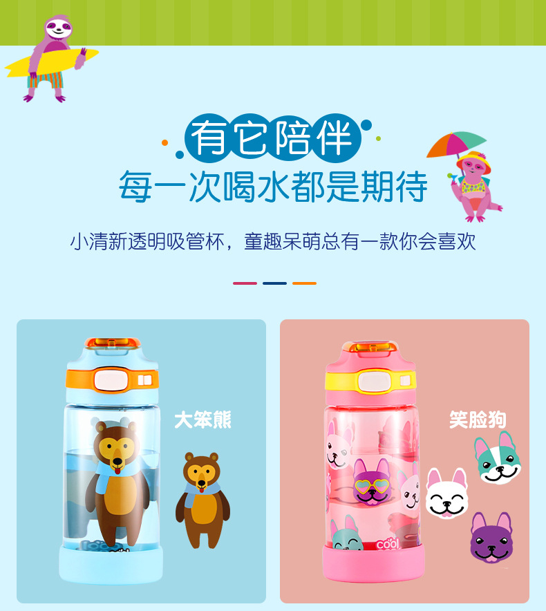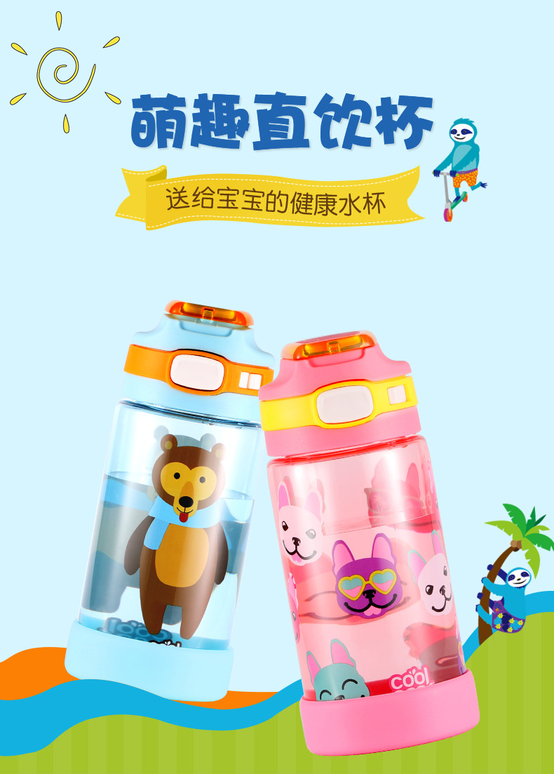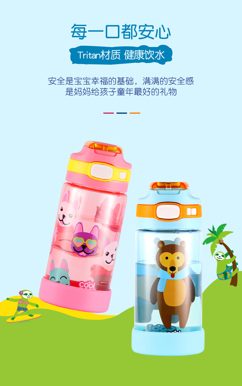 coolgear儿童水杯定制 小学生防摔便携水杯幼儿园卡通直饮运动水壶