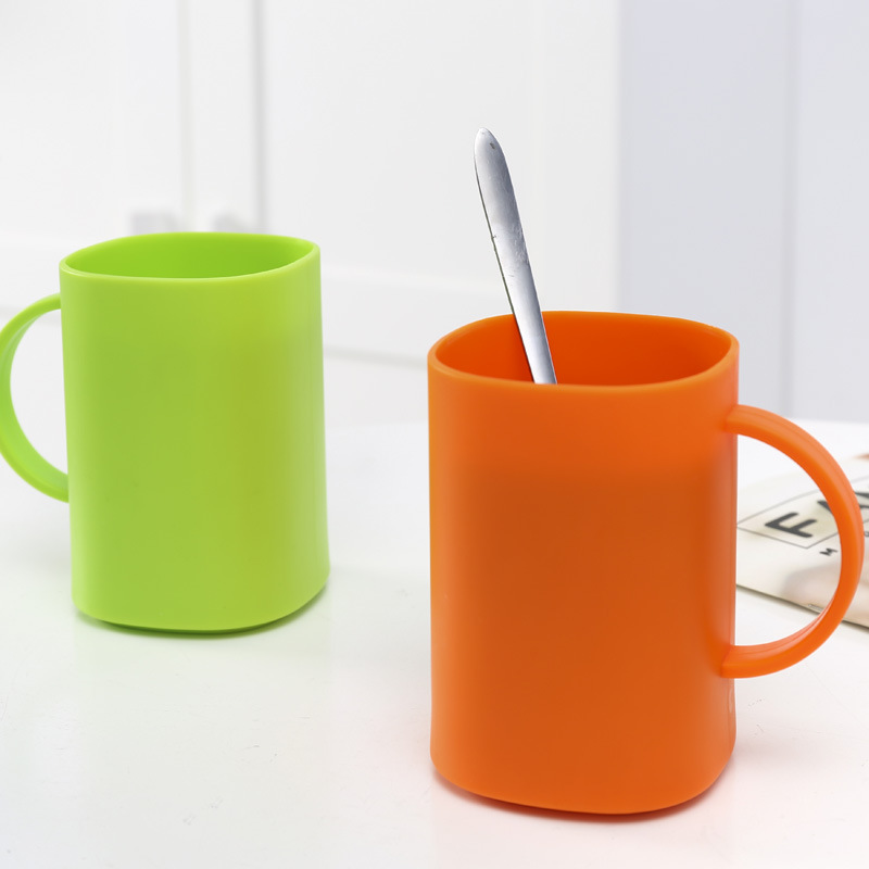 时尚创意彩色带手柄家用塑料水杯 广告礼品杯子牛奶杯可定制