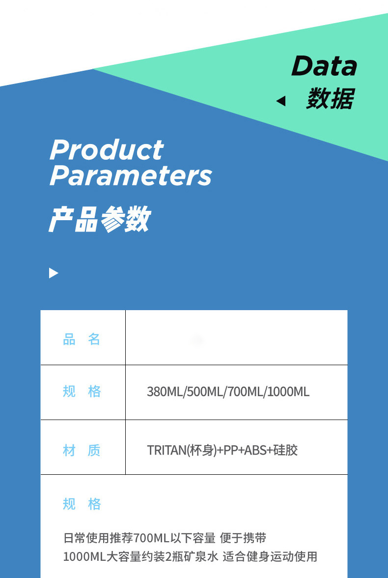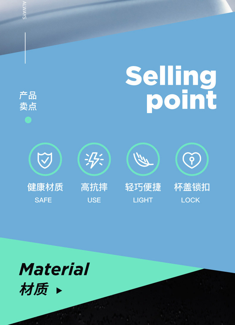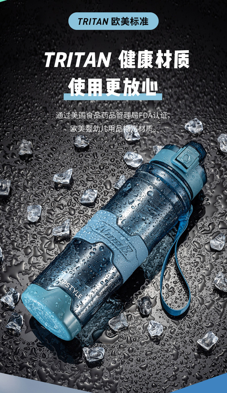 防摔运动水壶 水杯食品级塑料水杯 运动健身大容量便携水杯