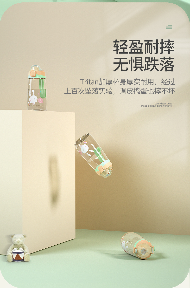 儿童吸管杯 便携水壶 学生直饮杯子 防摔水瓶
