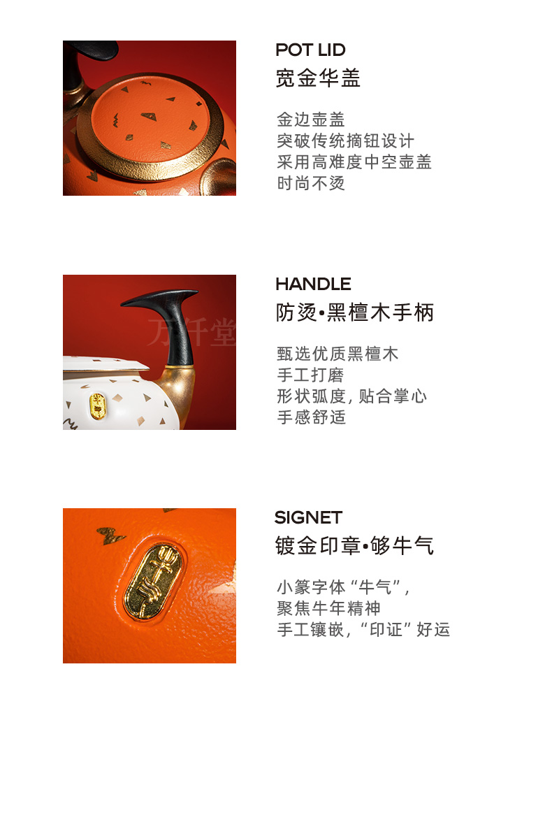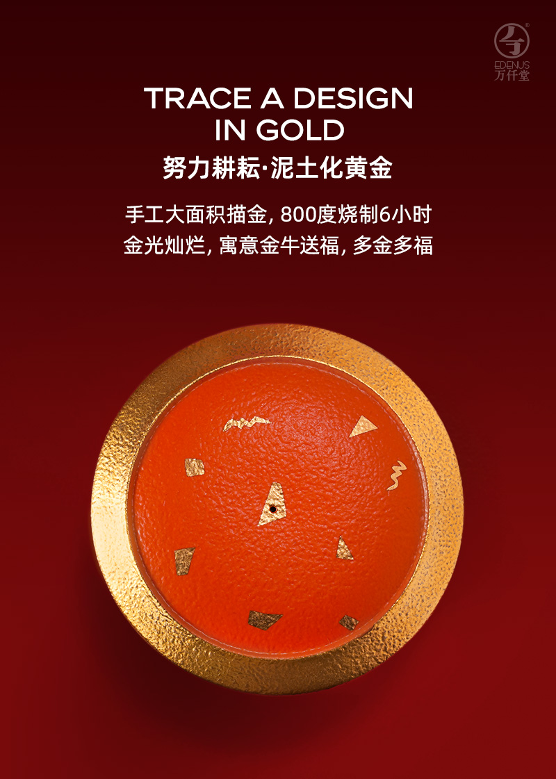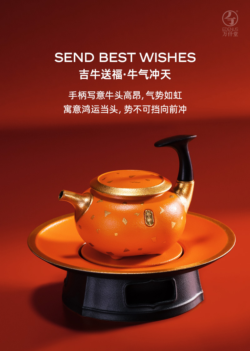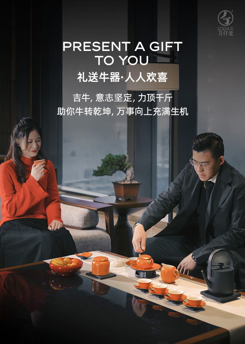 万仟堂Edenus茶具套装 6人用牛气冲天成套茶具 功夫茶具套装2021年春节礼盒牛年生肖茶具套装礼盒