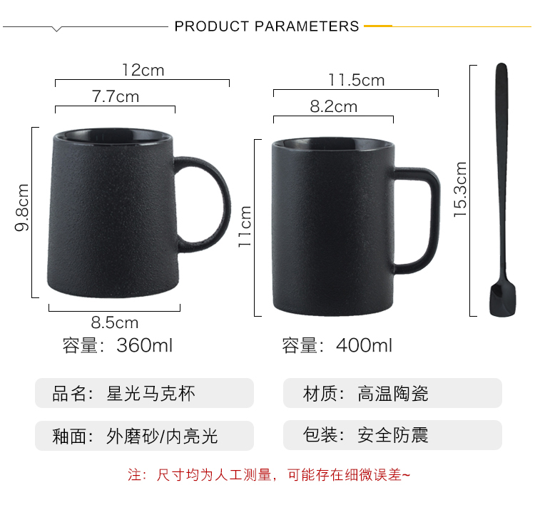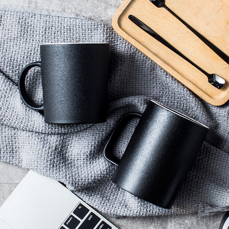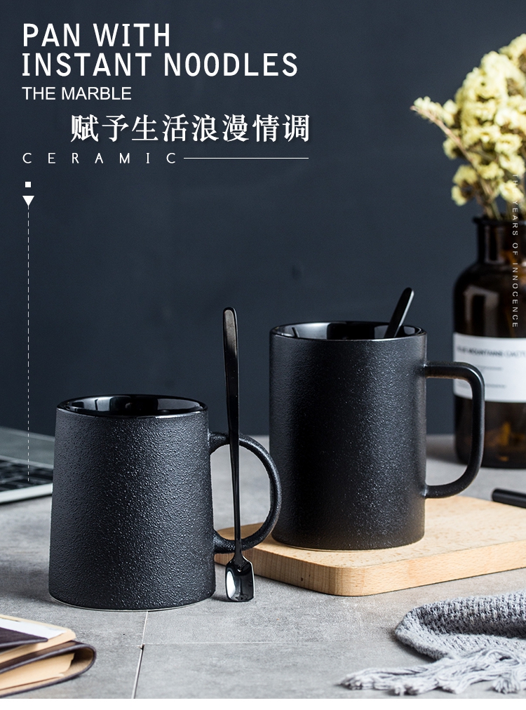 欧式磨砂个性陶瓷马克杯 粗陶黑色复古咖啡杯 日式简约杯子