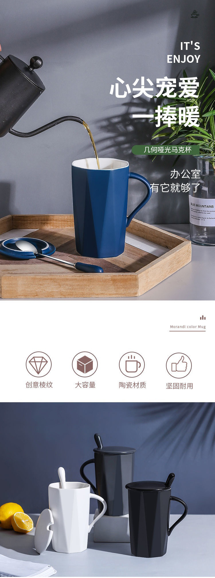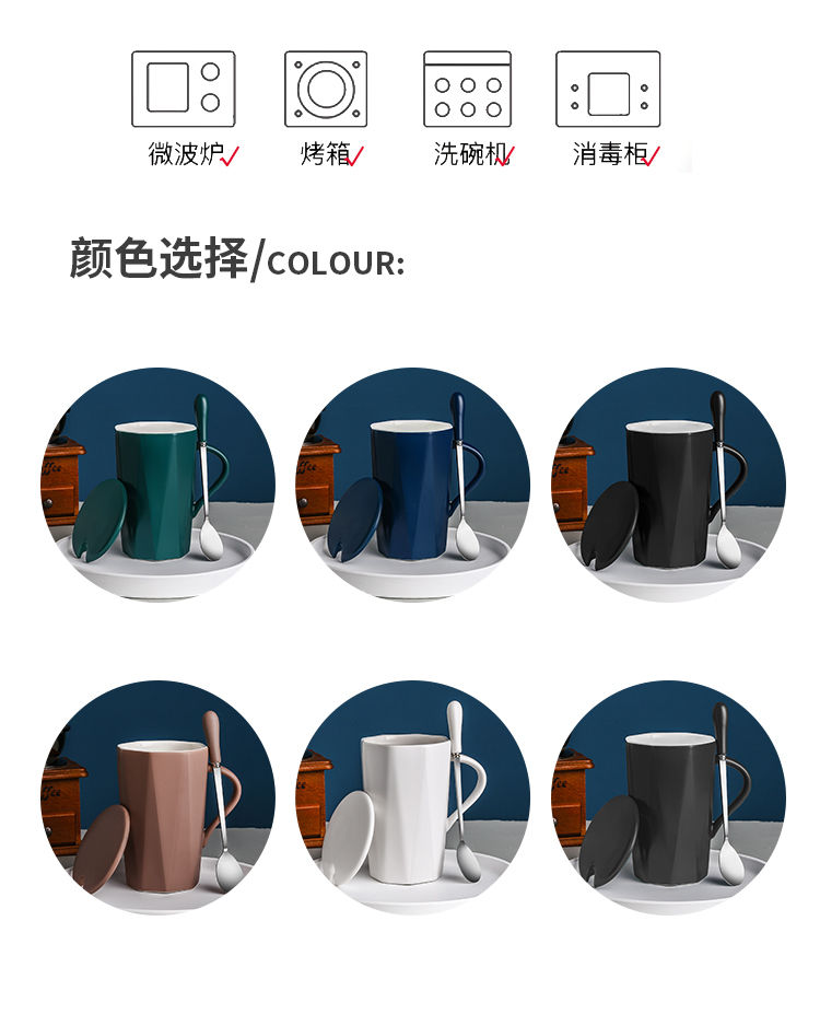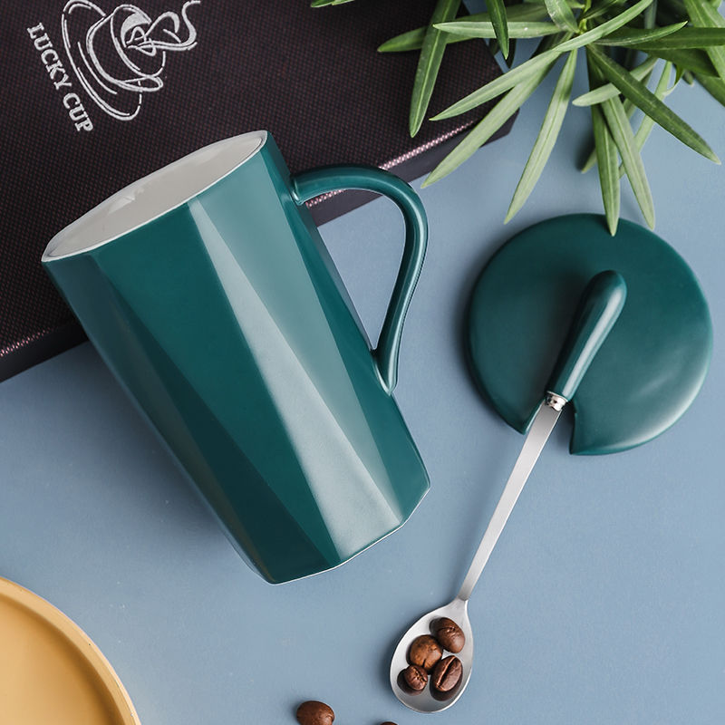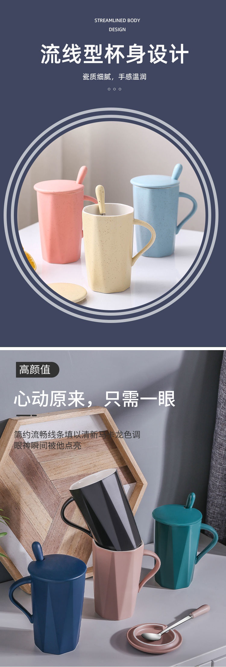 陶瓷马克杯带盖勺 学生韩版家用创意早餐咖啡杯大容量