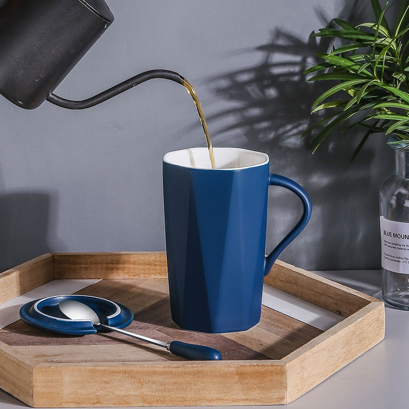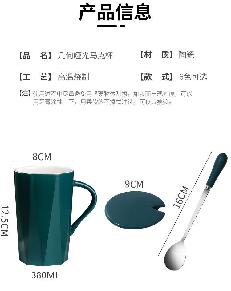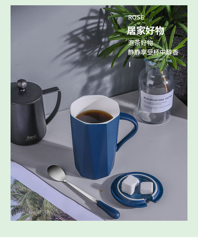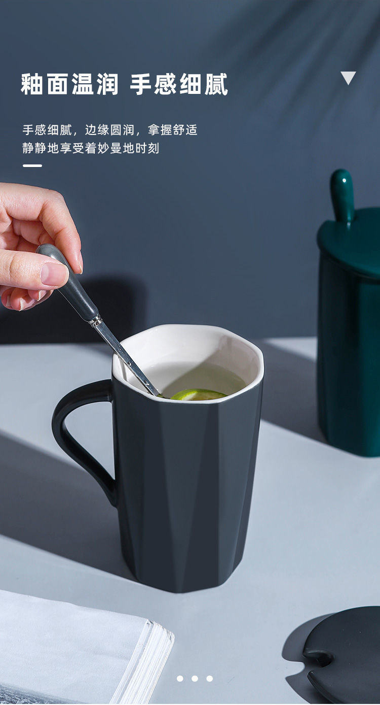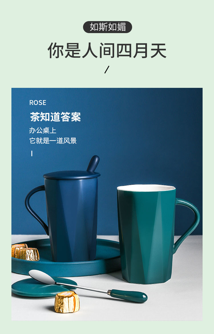 陶瓷马克杯带盖勺 学生韩版家用创意早餐咖啡杯大容量