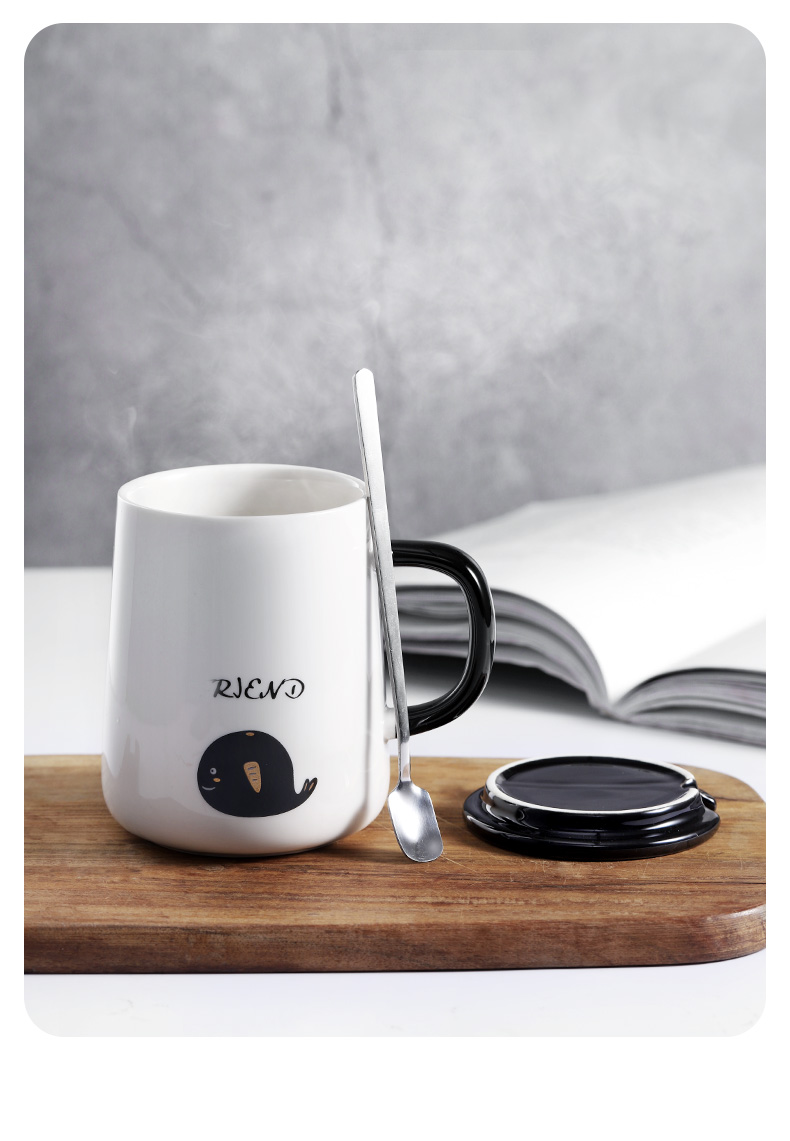 简约马克杯子带盖勺 创意个性家用咖啡杯子 陶瓷水杯