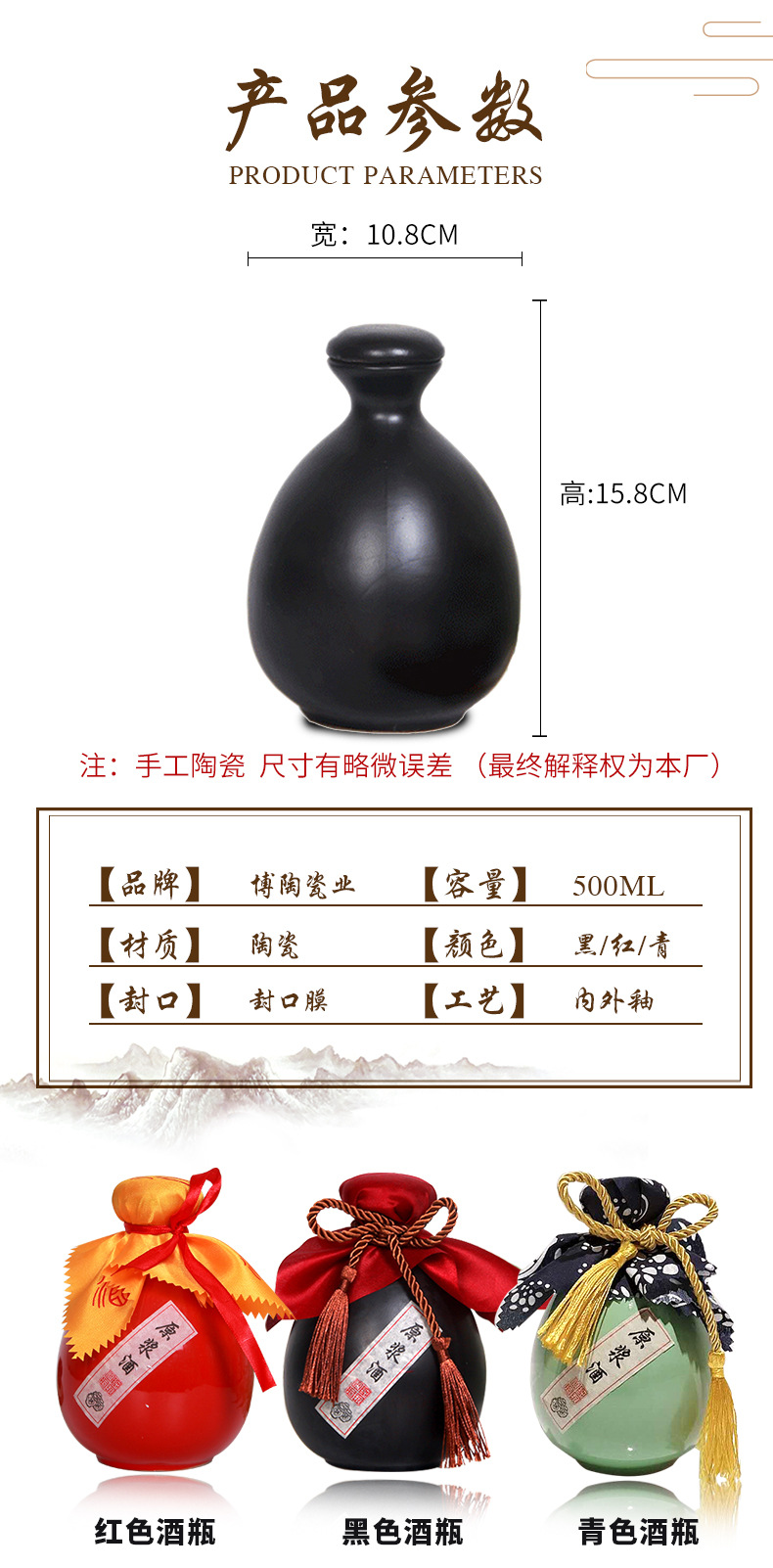 陶瓷酒壶空酒瓶定制 1斤装红色手抓瓶泡沫装陶瓷酒瓶泡沫套装定制LOGO
