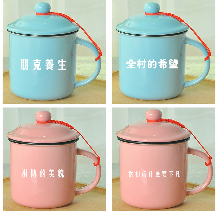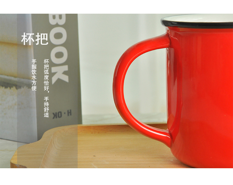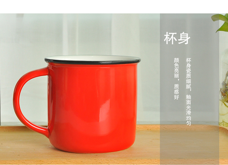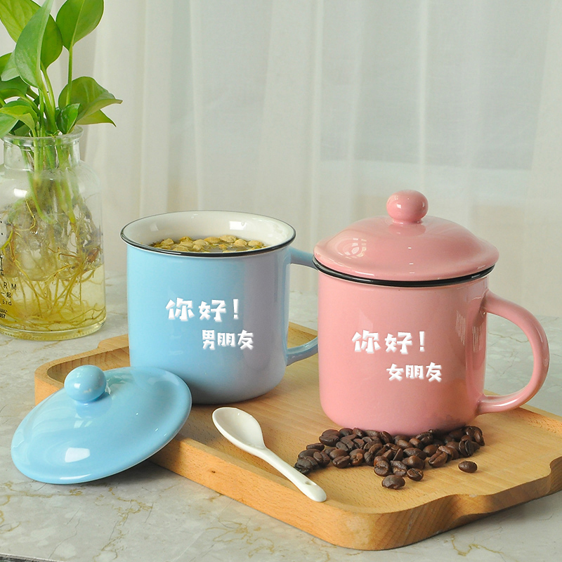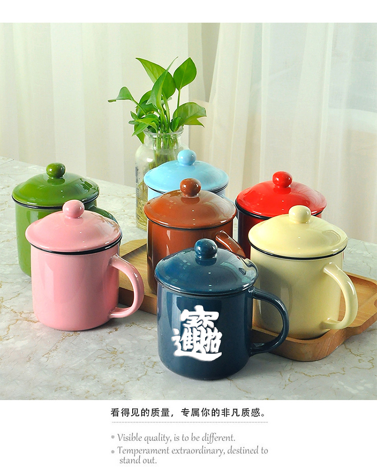 陶瓷马克杯带盖家用 创意简约仿搪瓷水杯免费刻字定制