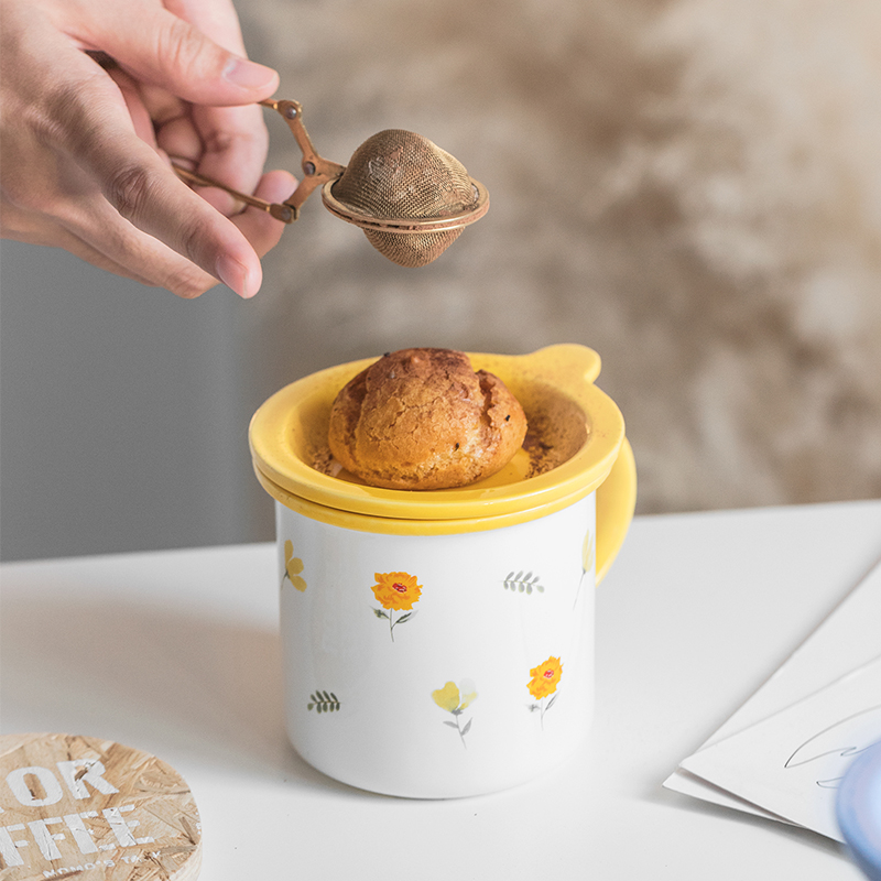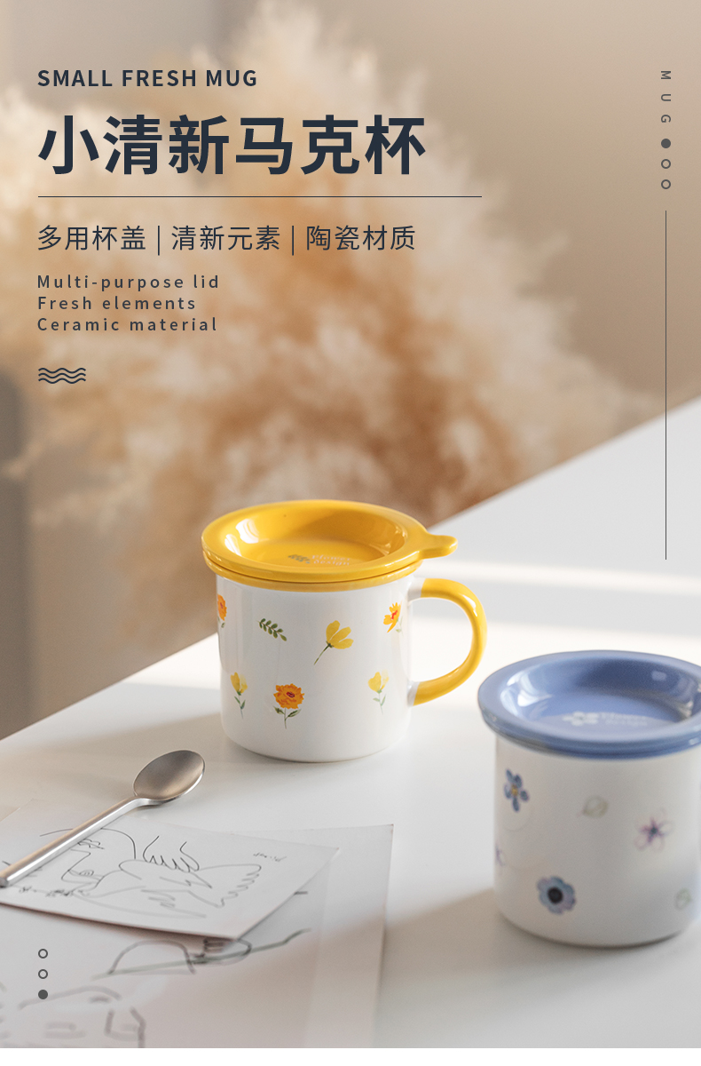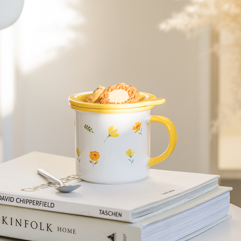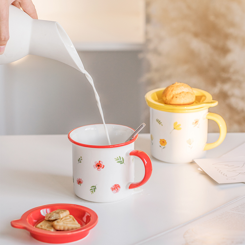 仿搪瓷陶瓷杯带盖勺 马克杯家用水杯 早餐杯可爱杯子