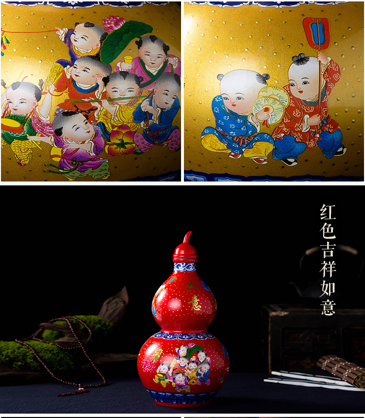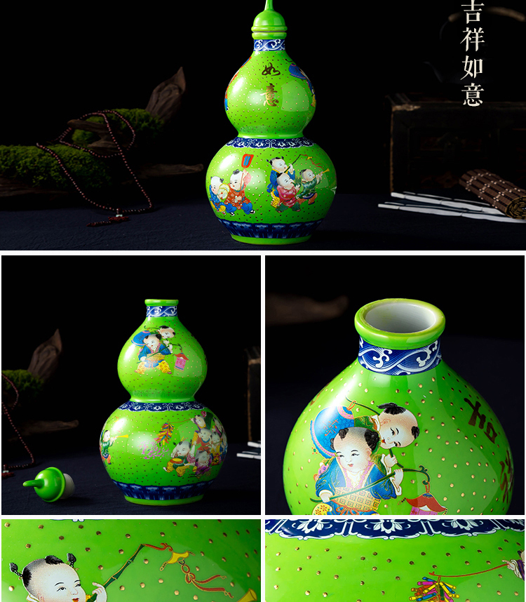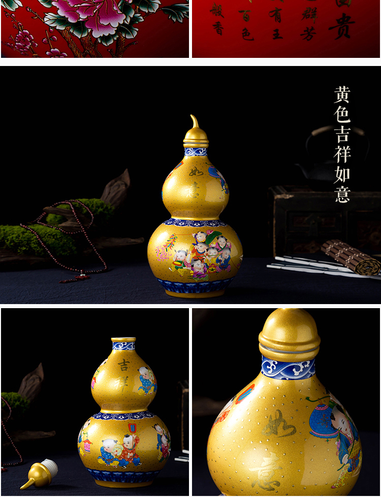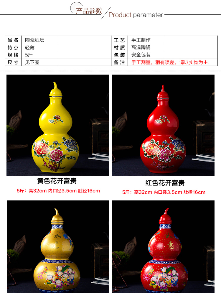 5斤装陶瓷酒瓶定制 酒坛子酒缸酒瓶 密封罐白酒壶密封酒壶颜色釉宝葫芦
