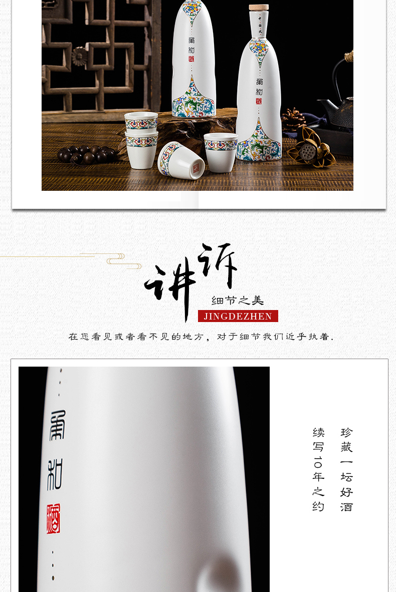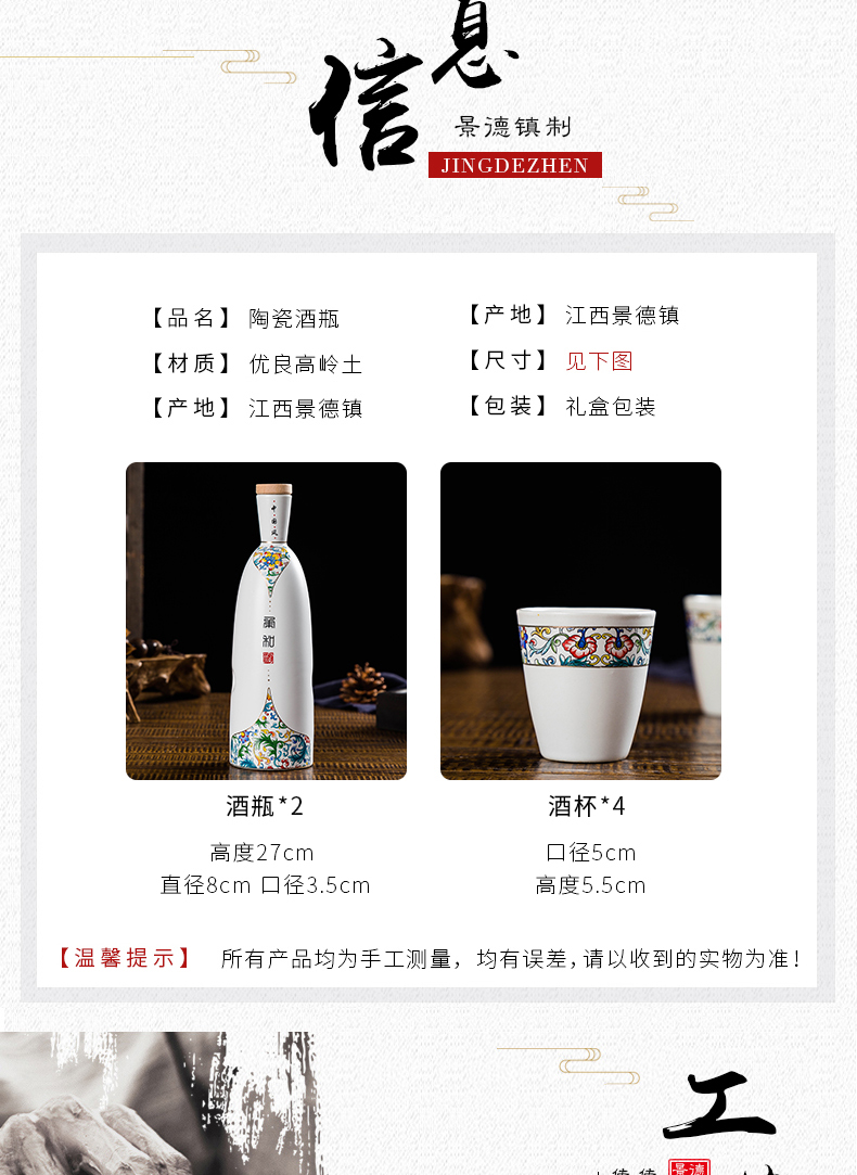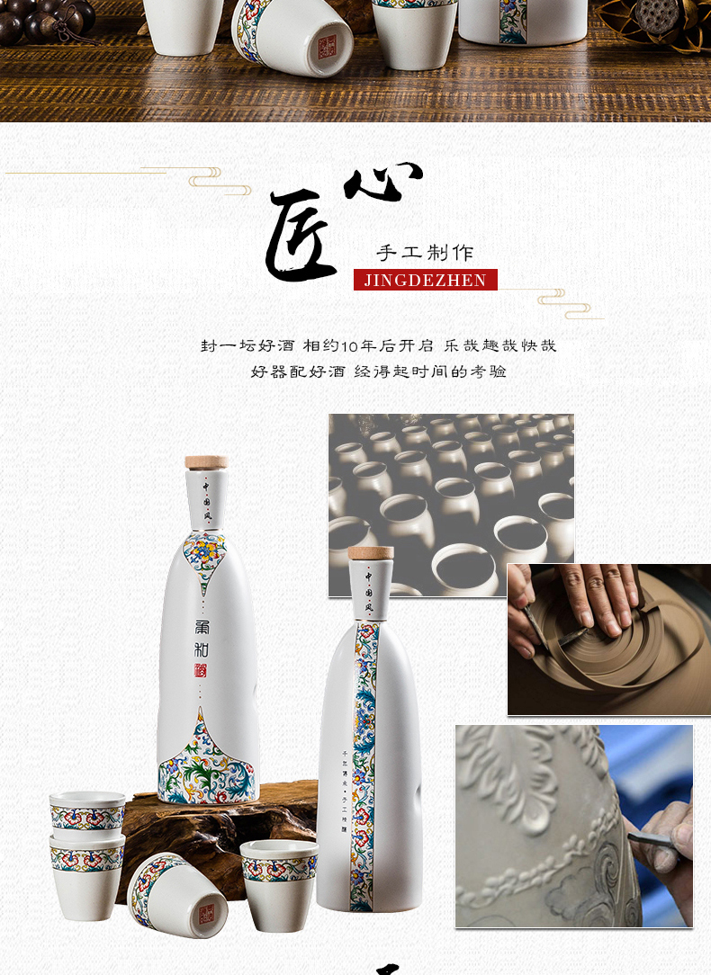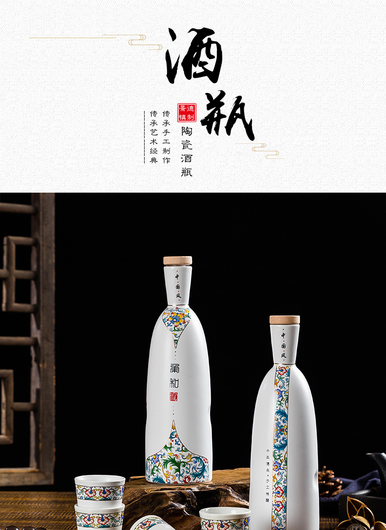 景德镇陶瓷酒瓶 1斤装坛子创意装饰中式酒壶密封空瓶白酒家用酒器