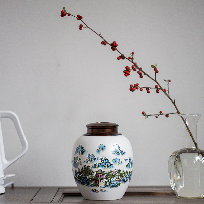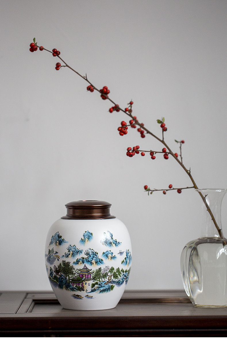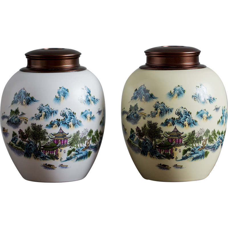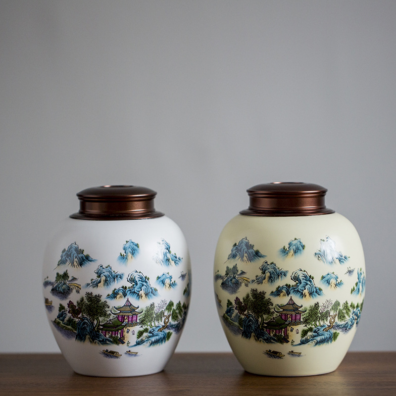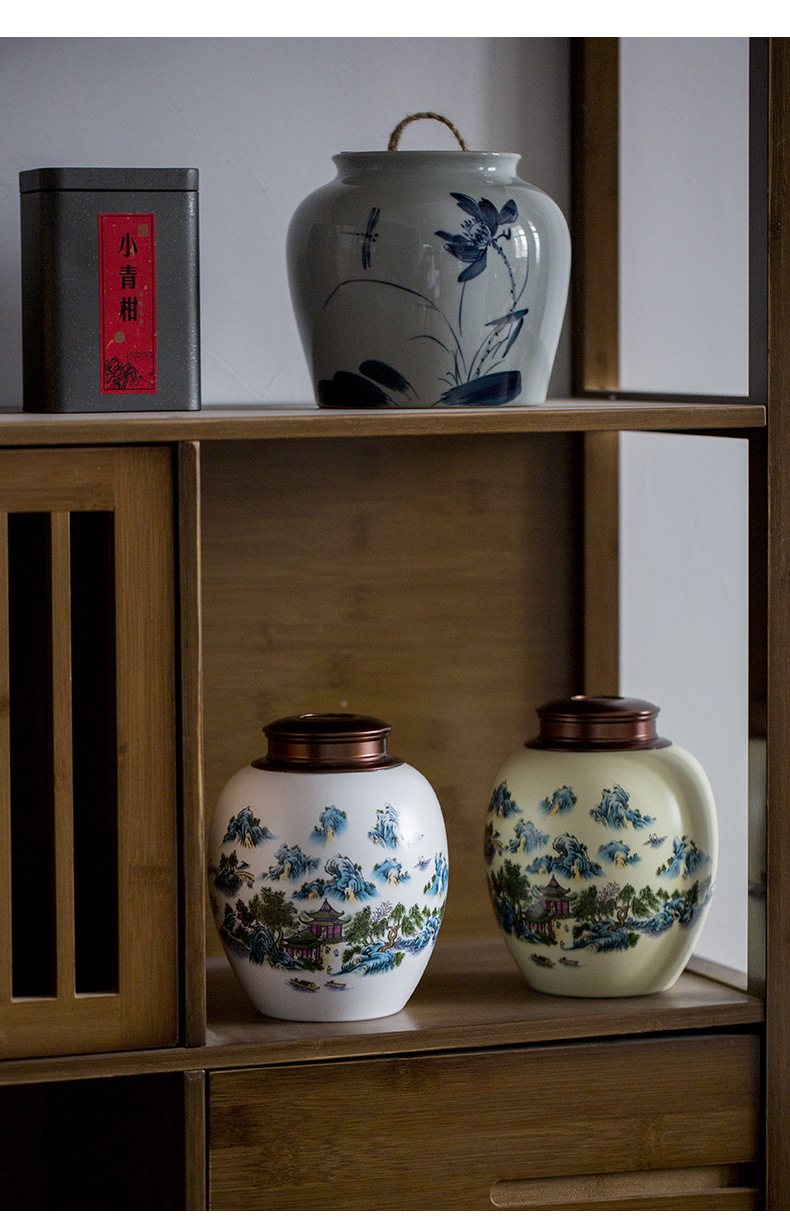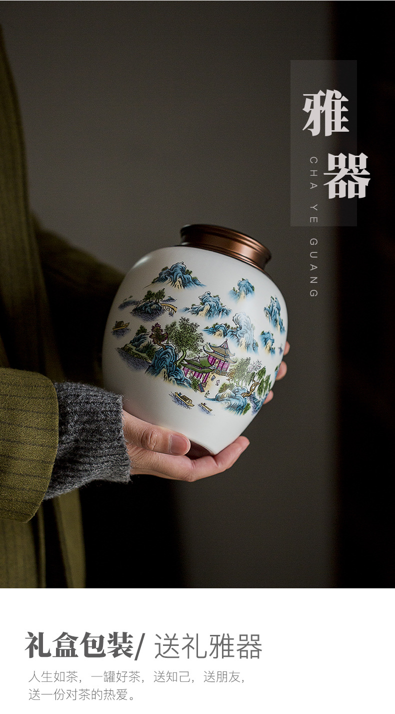 锡盖陶瓷茶叶罐定制 密封罐礼盒装简约存茶罐醒茶罐订做 茶叶包装绿茶罐礼盒
