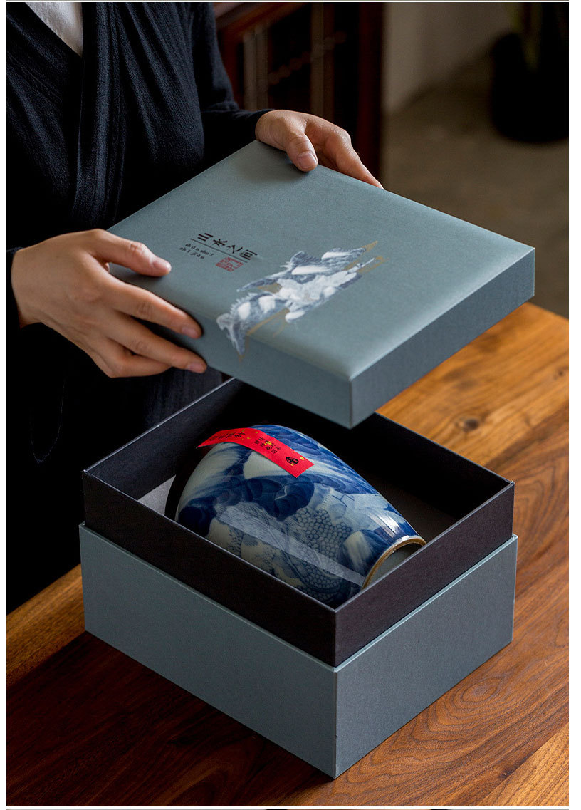 景德镇青花陶瓷茶叶罐定制 茶叶包装高档礼盒批发 红茶绿茶储存罐定制