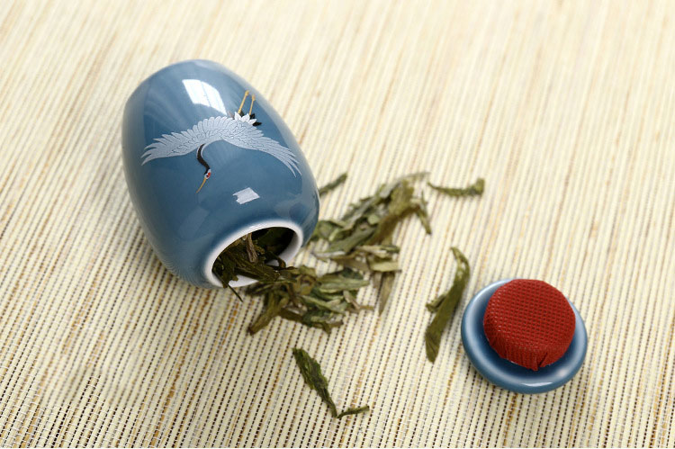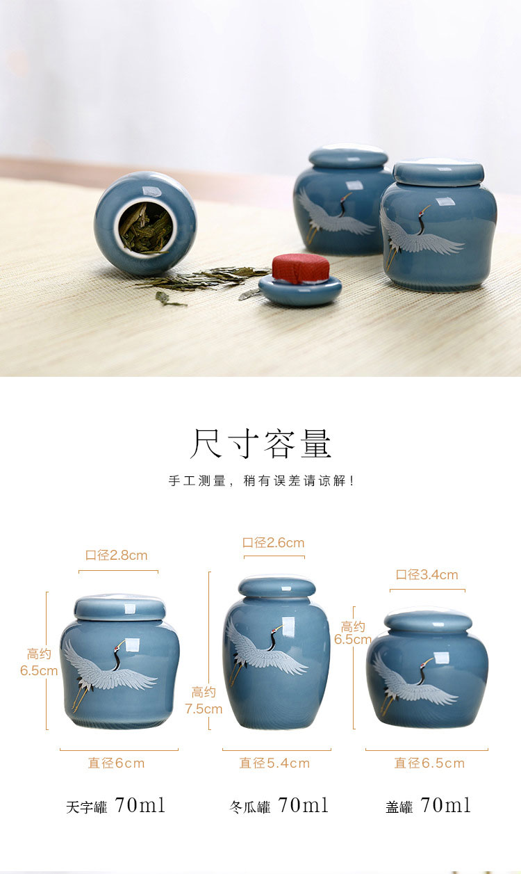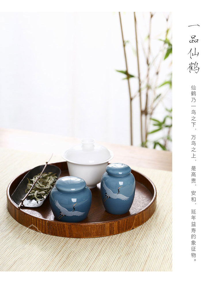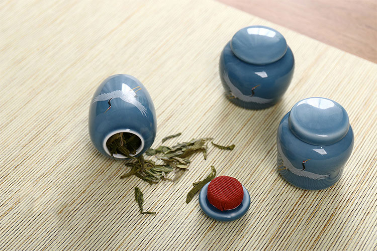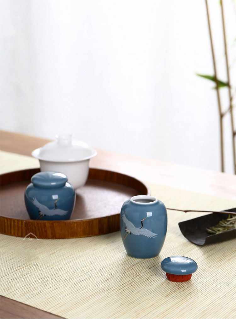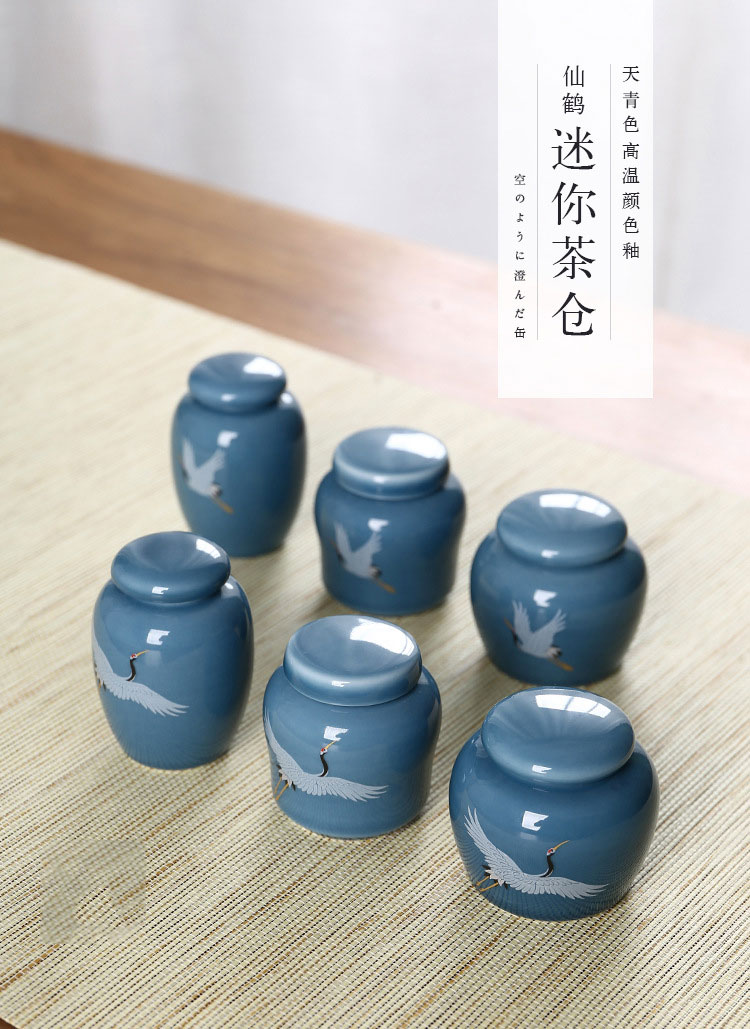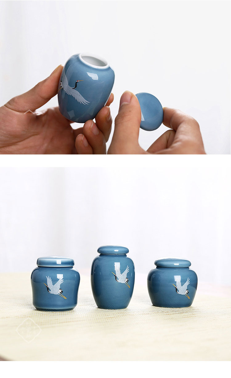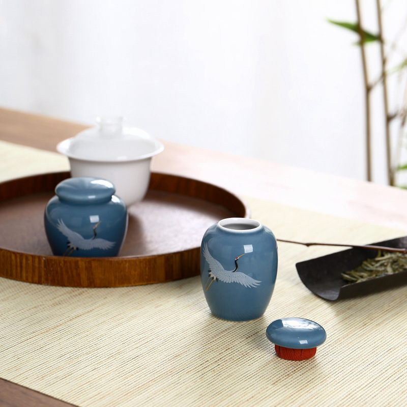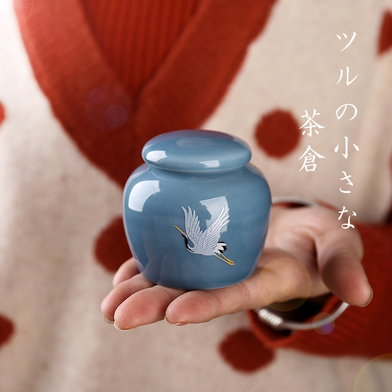 仙鹤陶瓷茶叶罐定制 小号花茶罐香粉罐随身便携小罐茶盒空茶叶包装定制