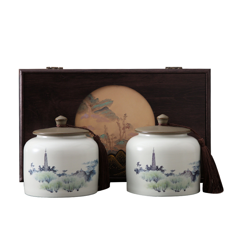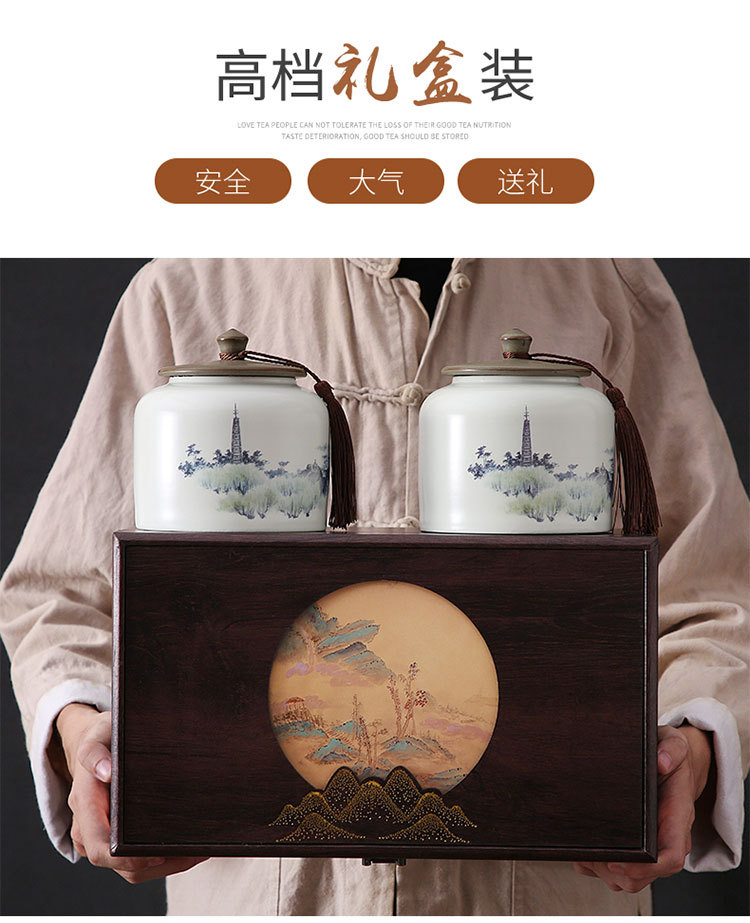 复古茶叶礼盒装 空盒高档陶瓷双罐 大红袍金骏眉通用茶礼包装定制