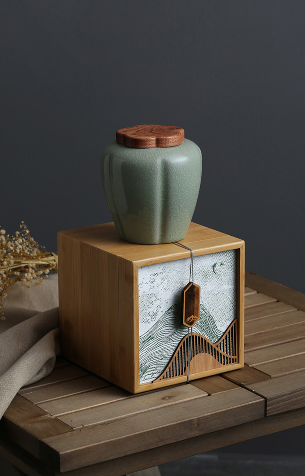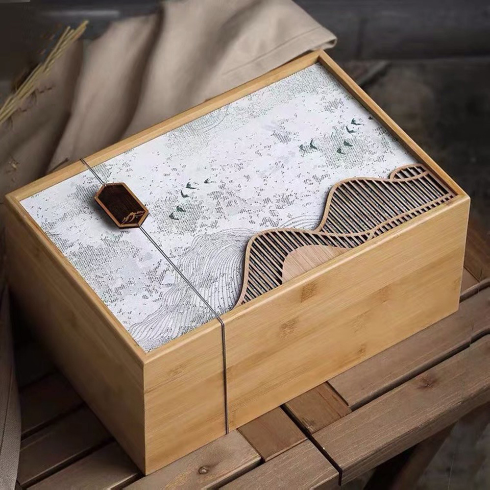 远山竹盒茶叶包装礼盒 陶瓷罐礼品盒空盒龙井方包半斤