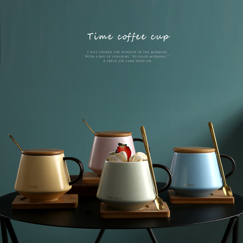 陶瓷咖啡杯 创意水杯 马克杯带勺盖
