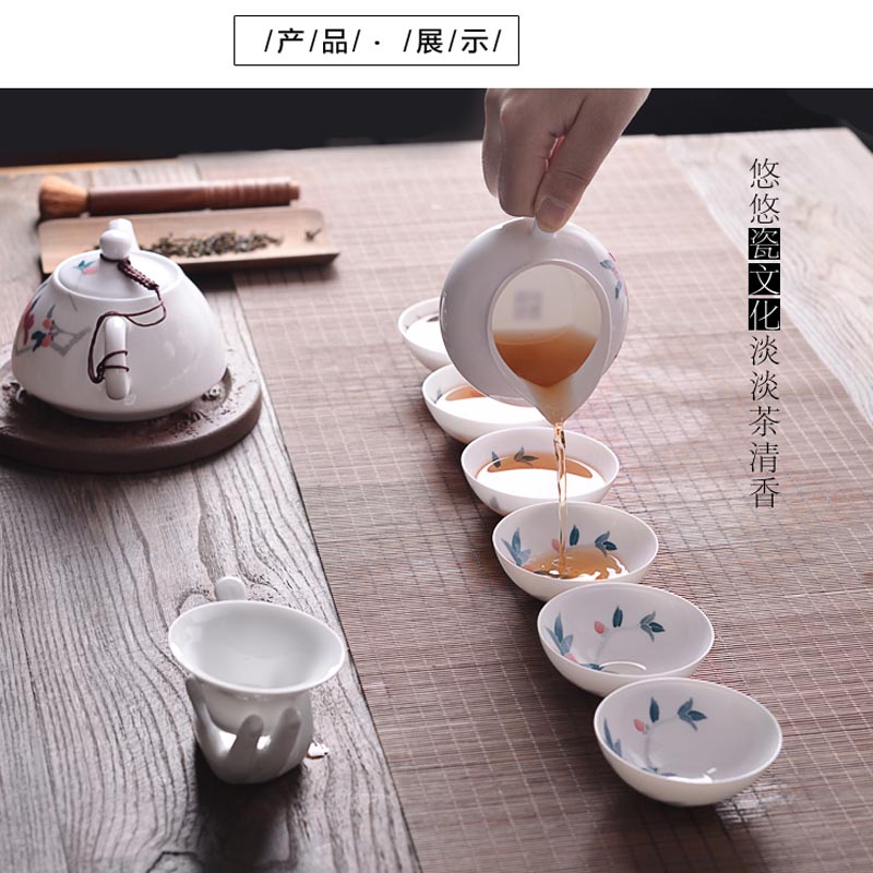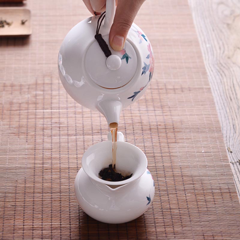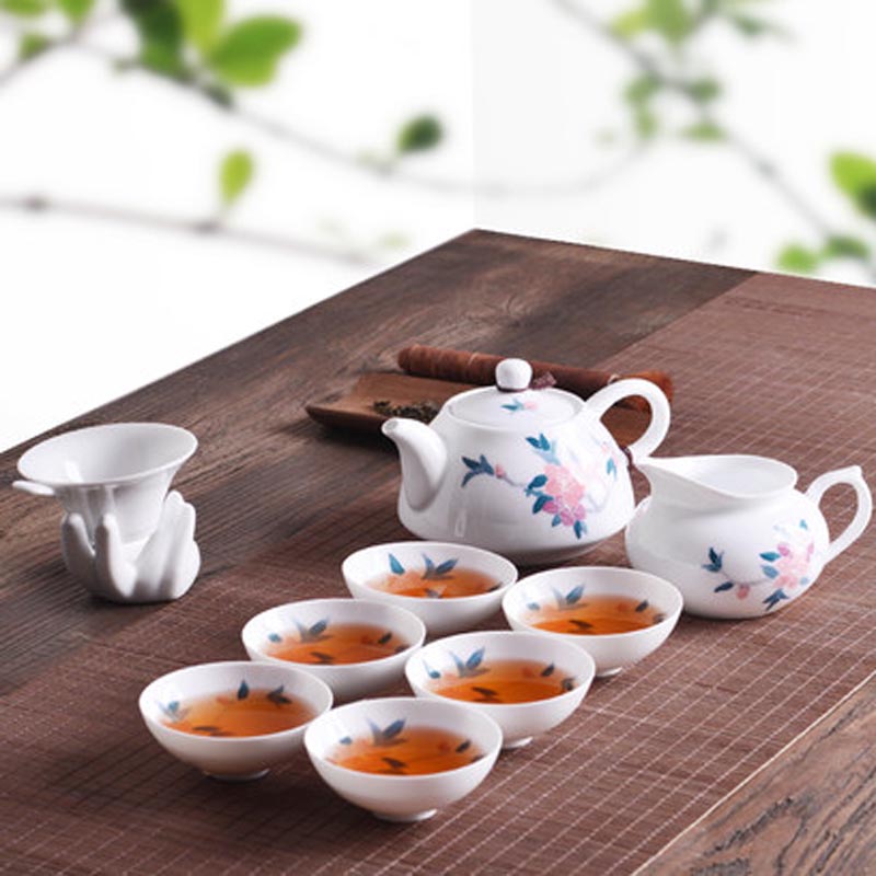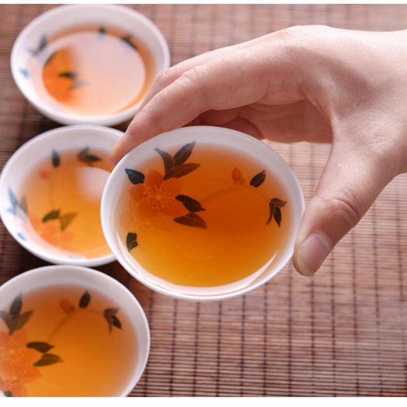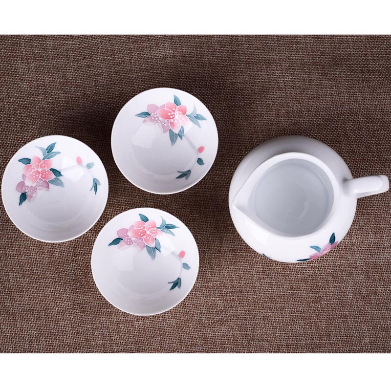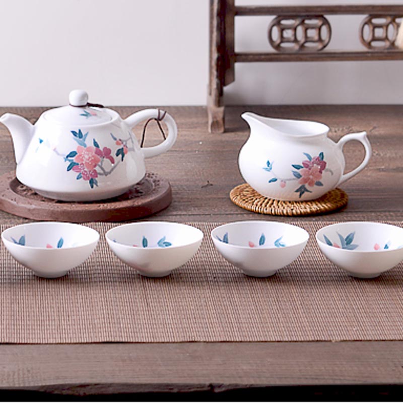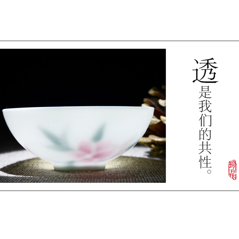 水点桃花骨瓷套杯