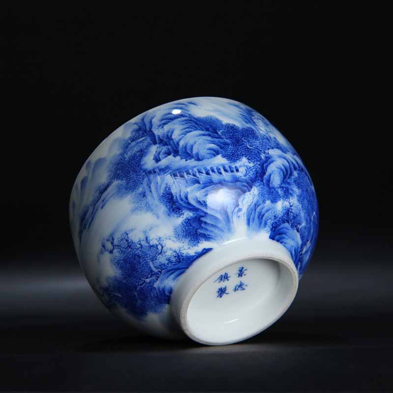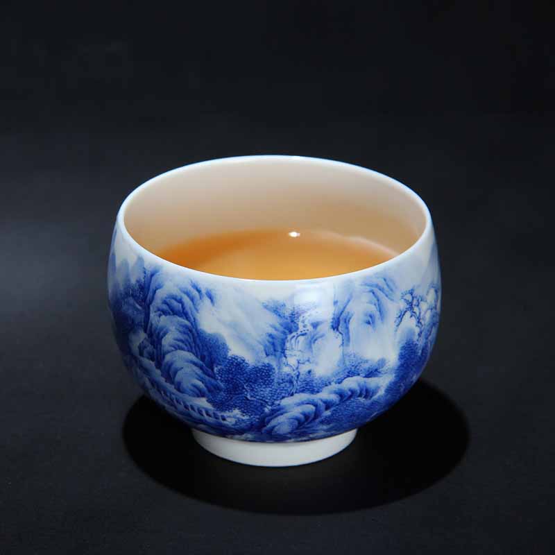 手绘重工青花瓷山水茶杯