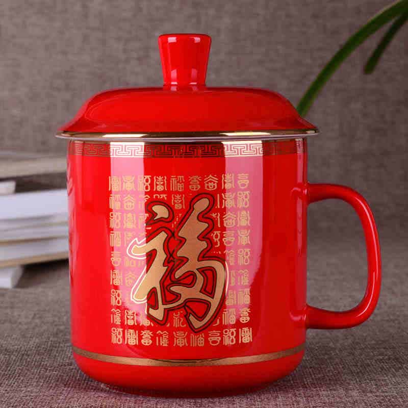 中国红瓷百福将军杯