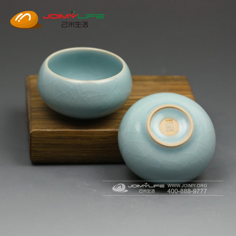 台湾釉汝窑功夫茶具 禅定品茗对杯定制