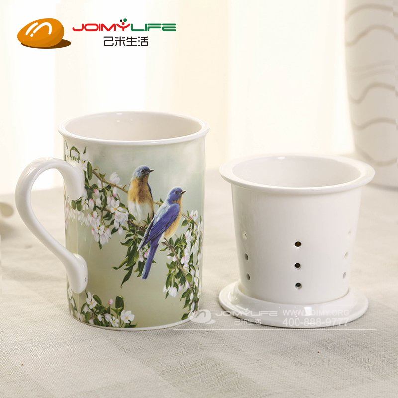 利和陶瓷景德镇花鸟图漏斗茶定制